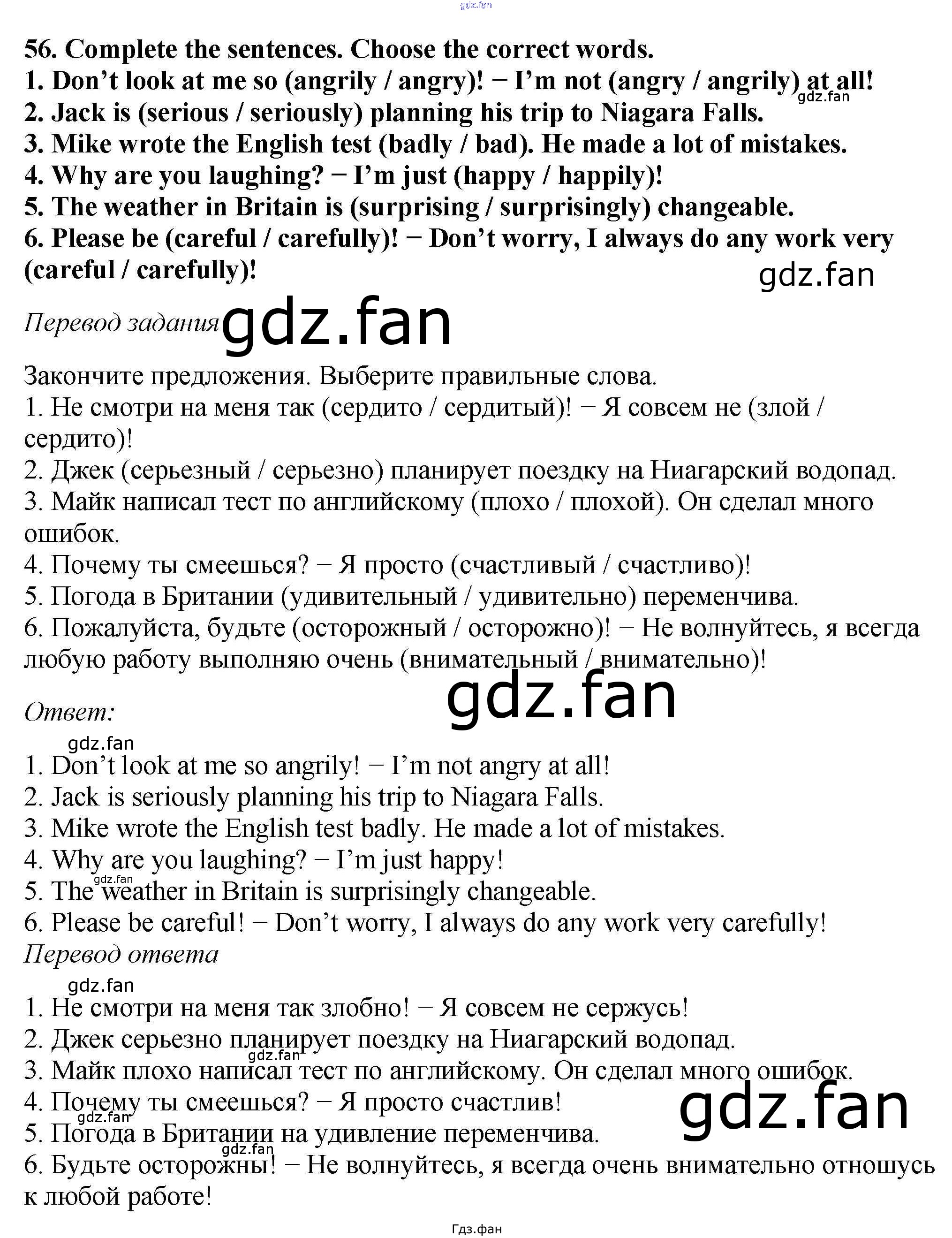 Проверка домашнего задания всегда занимает большое количество времени. На помощь приходит ГДЗ фан по Английскому языку шестого класса. Здесь собраны популярные ответы на 56 (стр. 98) Английский язык 6 класс Enjoy English Биболетова М.З.