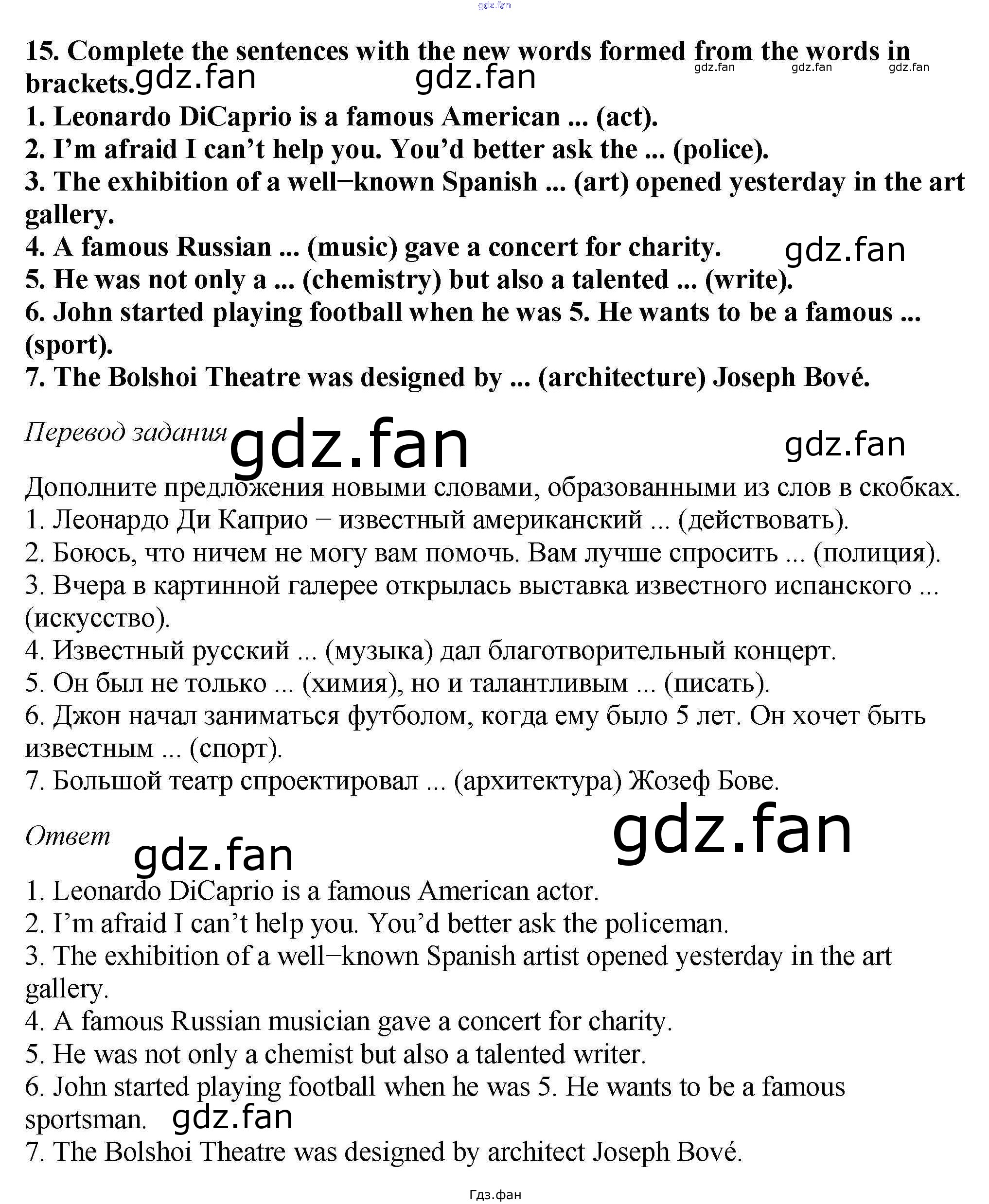 Проверка домашнего задания всегда занимает большое количество времени. На помощь приходит ГДЗ фан по Английскому языку шестого класса. Здесь собраны популярные ответы на 15 (стр. 134) Английский язык 6 класс Enjoy English Биболетова М.З.