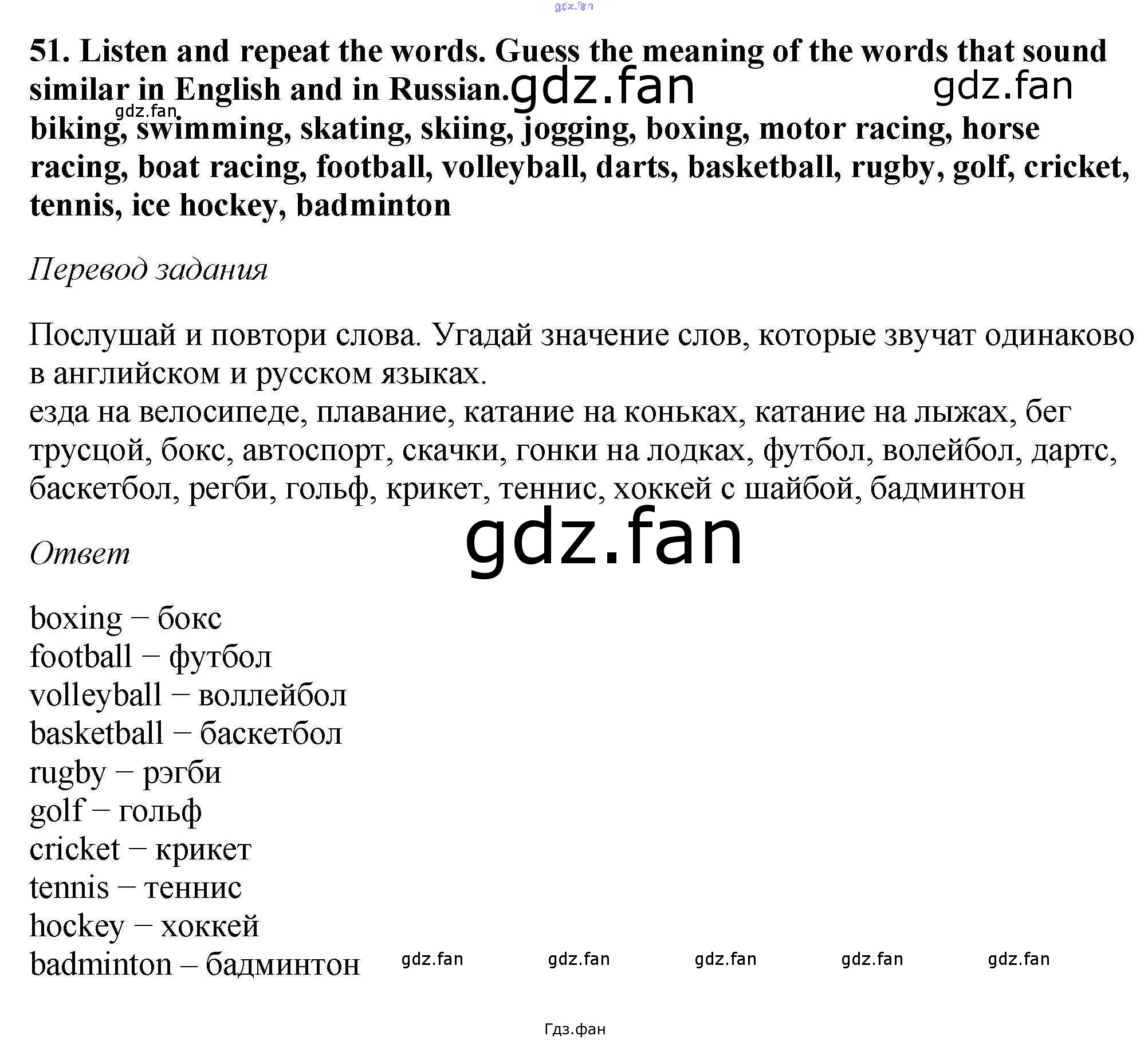 Проверка домашнего задания всегда занимает большое количество времени. На помощь приходит ГДЗ фан по Английскому языку шестого класса. Здесь собраны популярные ответы на 51 (стр. 158) Английский язык 6 класс Enjoy English Биболетова М.З.