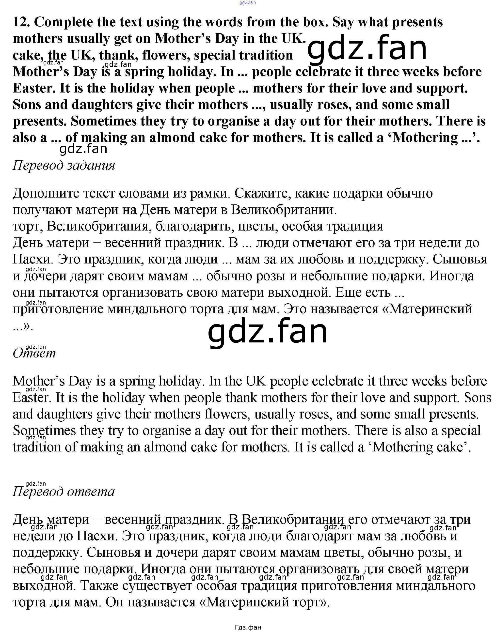 Проверка домашнего задания всегда занимает большое количество времени. На помощь приходит ГДЗ фан по Английскому языку шестого класса. Здесь собраны популярные ответы на 12 (стр. 179) Английский язык 6 класс Enjoy English Биболетова М.З.