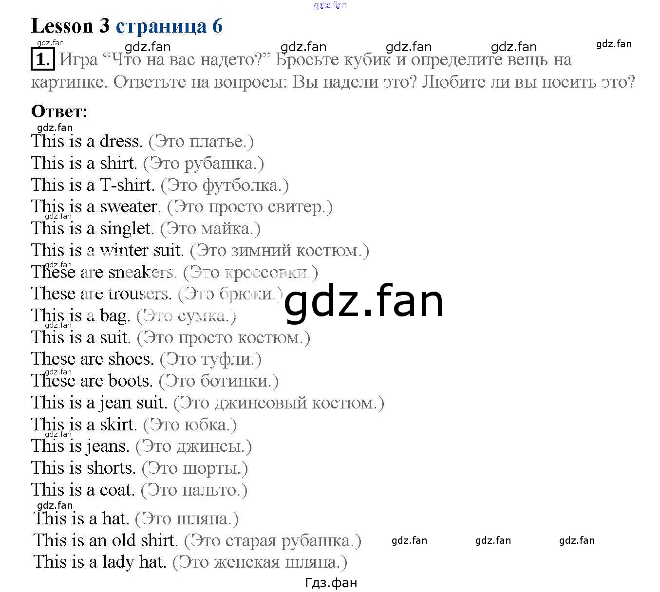 Проверка домашнего задания всегда занимает большое количество времени. На помощь приходит ГДЗ фан по Английскому языку шестого класса. Здесь собраны популярные ответы на 6 (Lesson 3 № 1) Английский язык 6 класс рабочая тетрадь Кузовлёв