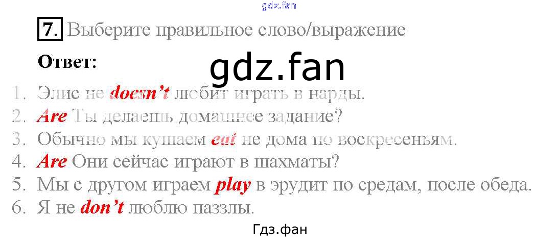 Проверка домашнего задания всегда занимает большое количество времени. На помощь приходит ГДЗ фан по Английскому языку шестого класса. Здесь собраны популярные ответы на 7 (стр. 59) Английский язык 6 класс Spotlight Ваулина Е.