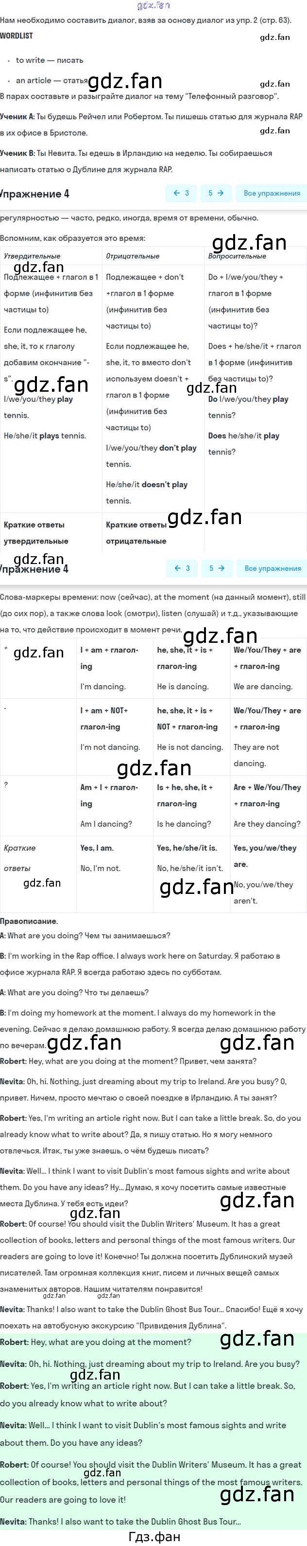 Проверка домашнего задания всегда занимает большое количество времени. На помощь приходит ГДЗ фан по Английскому языку шестого класса. Здесь собраны популярные ответы на 4 (стр. 63) Английский язык 6 класс Вербицкая М.В.