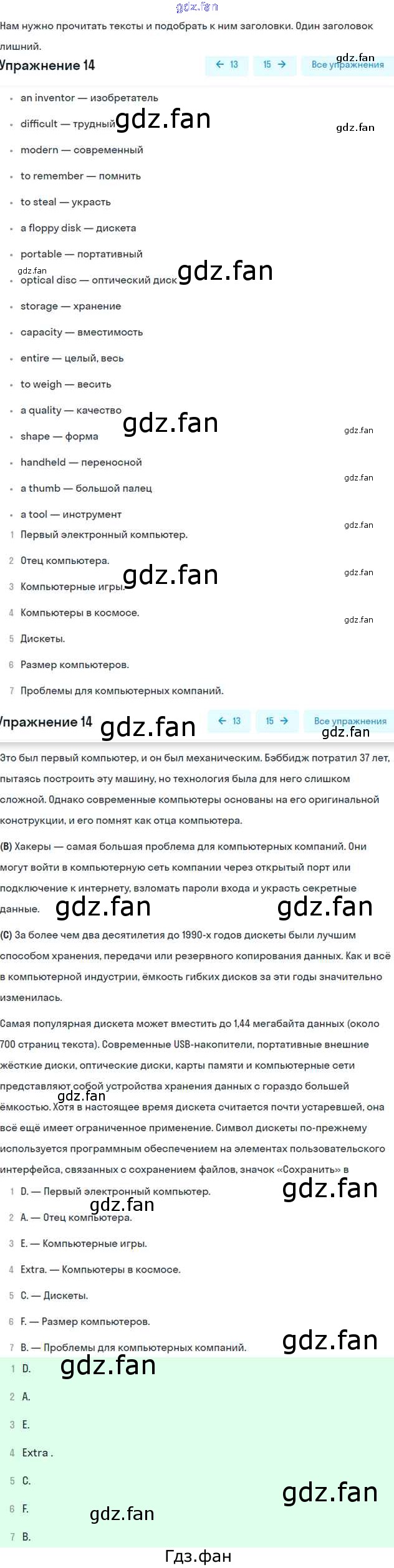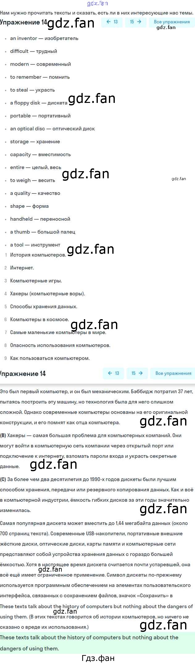 ГДЗ - онлайн ответы на 14 (стр. 58) Английский язык для 6 класса к Учебнику Forward Вербицкая, Гаярделли 2017