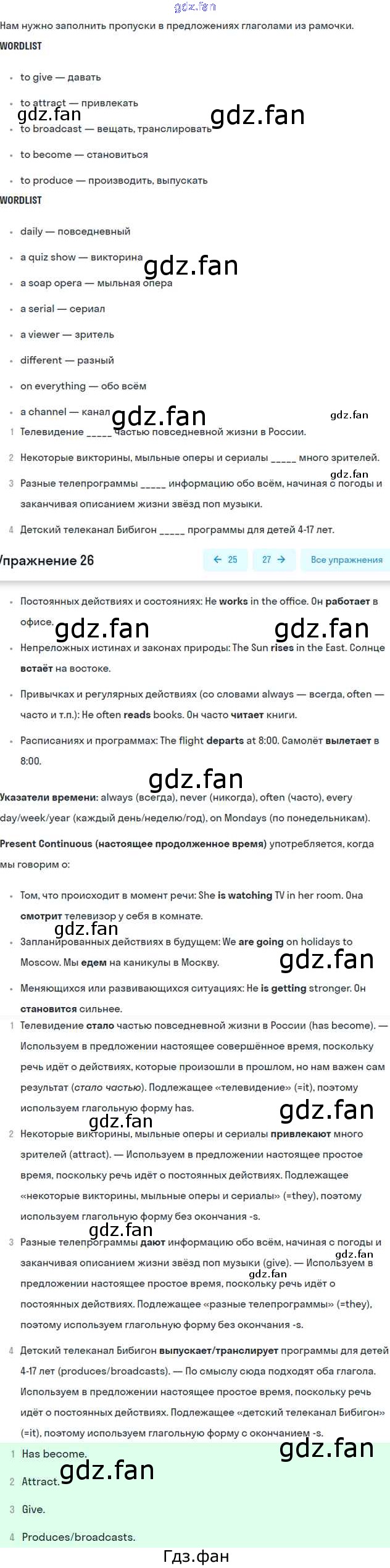 Проверка домашнего задания всегда занимает большое количество времени. На помощь приходит ГДЗ фан по Английскому языку шестого класса. Здесь собраны популярные ответы на 26 (стр. 71) Английский язык 6 класс Вербицкая М.В.