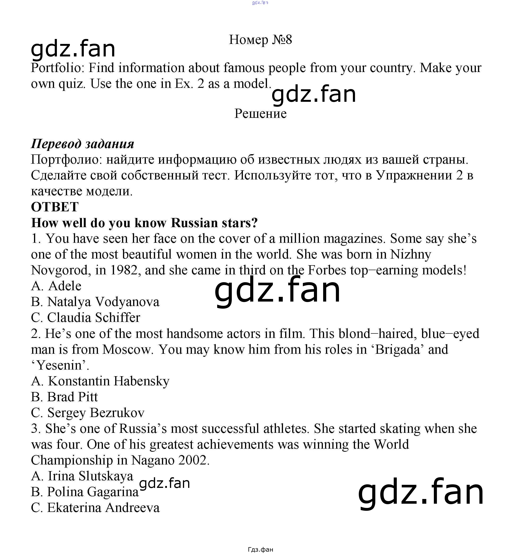 Проверка домашнего задания всегда занимает большое количество времени. На помощь приходит ГДЗ фан по Английскому языку седьмого класса. Здесь собраны популярные ответы на 8 (стр. 67) Английский язык 7 класс Ваулина Spotlight