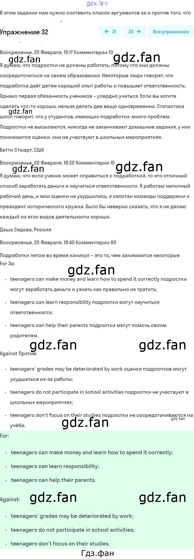 Проверка домашнего задания всегда занимает большое количество времени. На помощь приходит ГДЗ фан по Английскому языку седьмого класса. Здесь собраны популярные ответы на 32 (стр. 33) Английский язык 7 класс Вербицкая М.В.