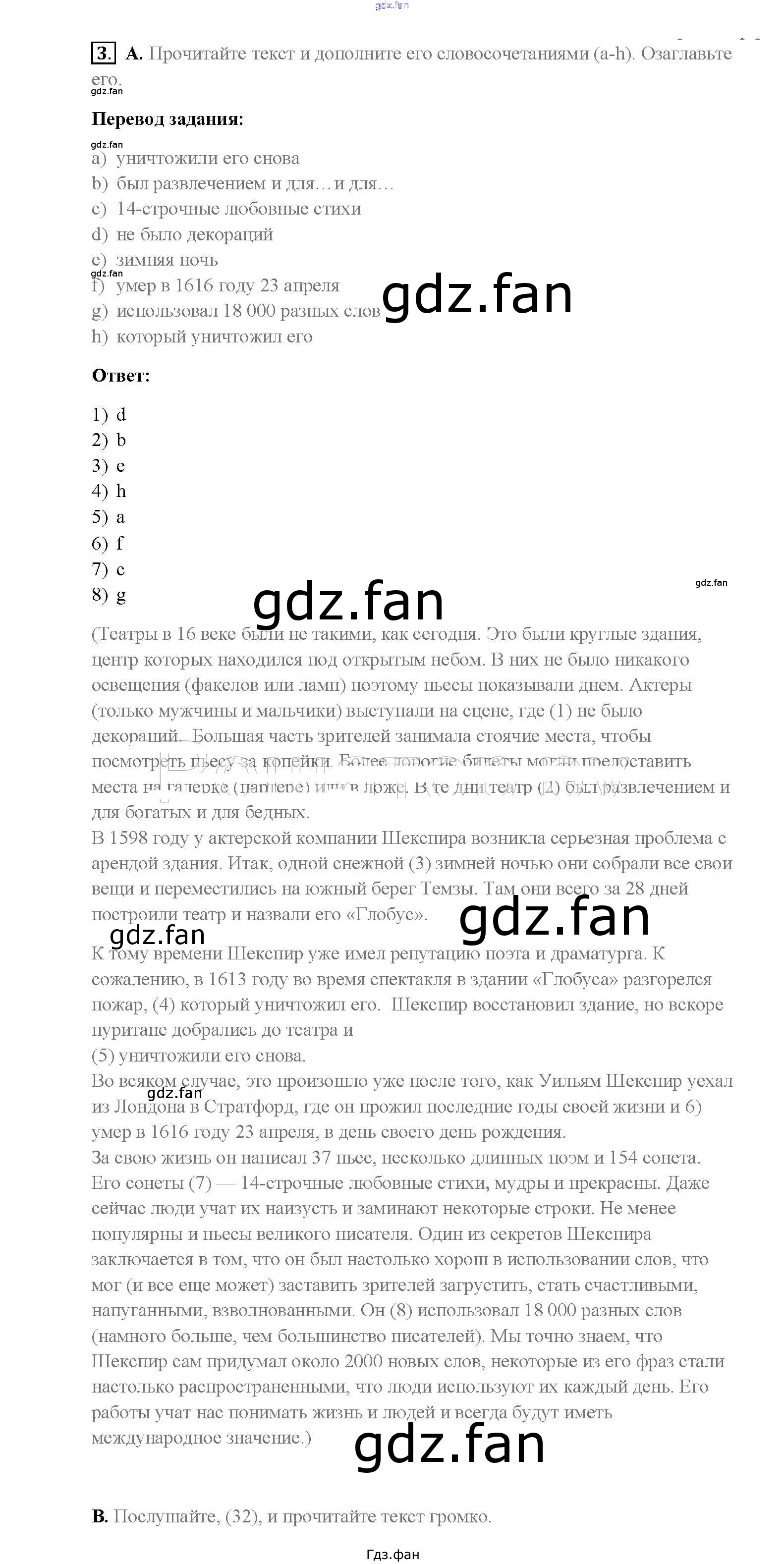 Проверка домашнего задания всегда занимает большое количество времени. На помощь приходит ГДЗ фан по Английскому языку восьмого класса. Здесь собраны популярные ответы на 3 (стр. 73) Английский язык 8 класс Rainbow English Афанасьева О.В.