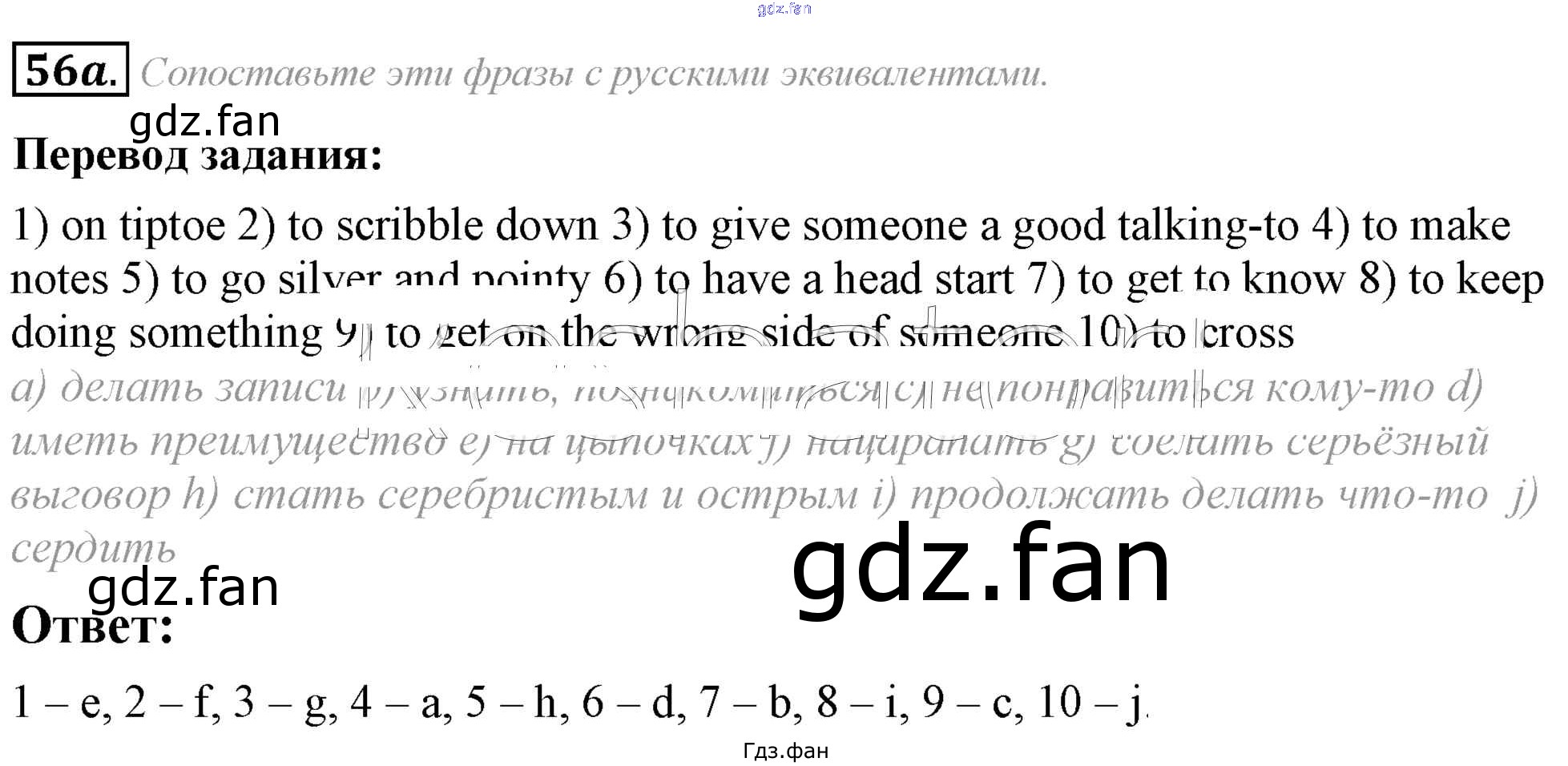 Проверка домашнего задания всегда занимает большое количество времени. На помощь приходит ГДЗ фан по Английскому языку восьмого класса. Здесь собраны популярные ответы на 56a (стр. 82) Английский язык 8 класс Афанасьева (Углубленный уровень)