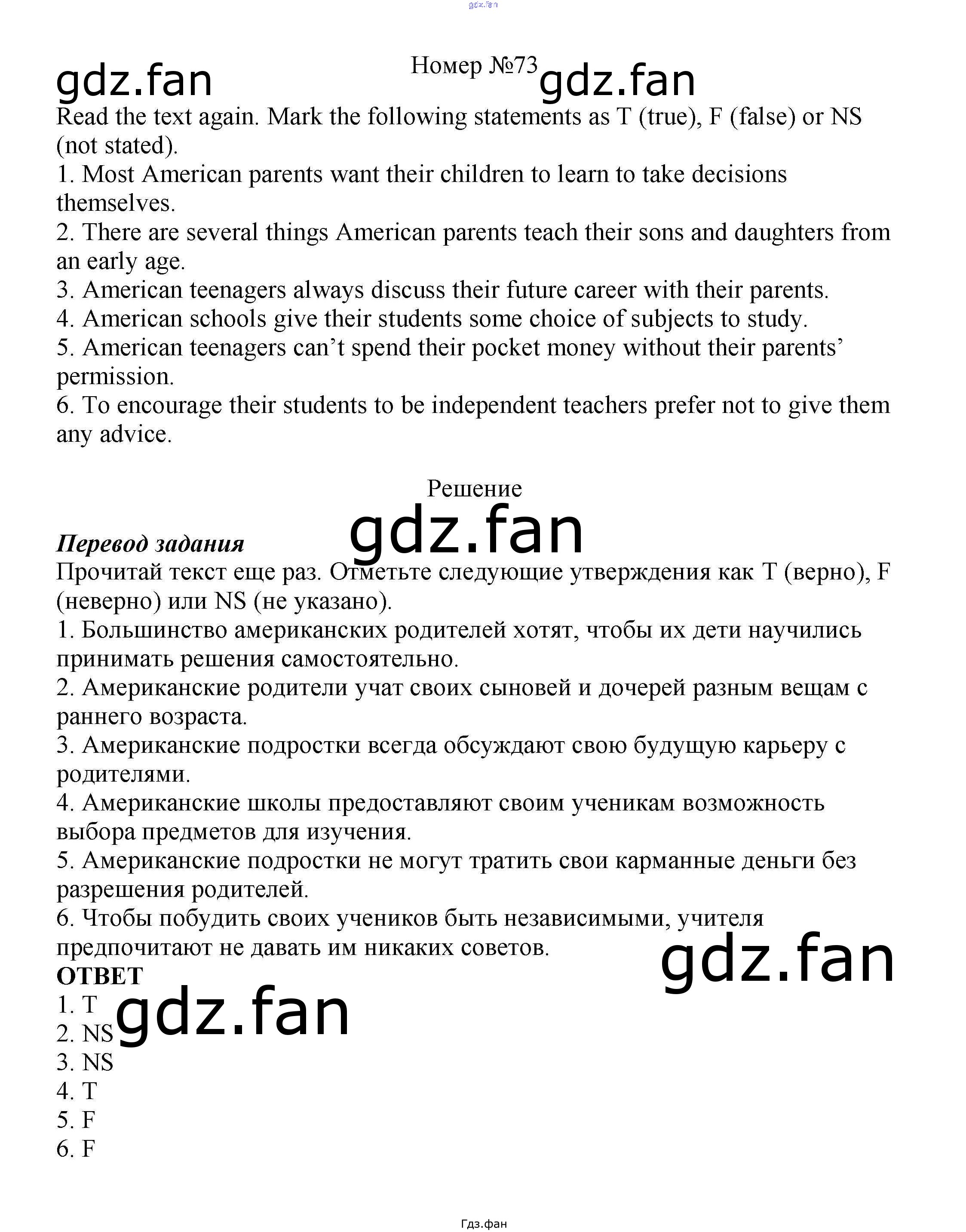 Проверка домашнего задания всегда занимает большое количество времени. На помощь приходит ГДЗ фан по Английскому языку восьмого класса. Здесь собраны популярные ответы на 73 (стр. 145) Английский язык 8 класс Enjoy English Биболетова М.З.