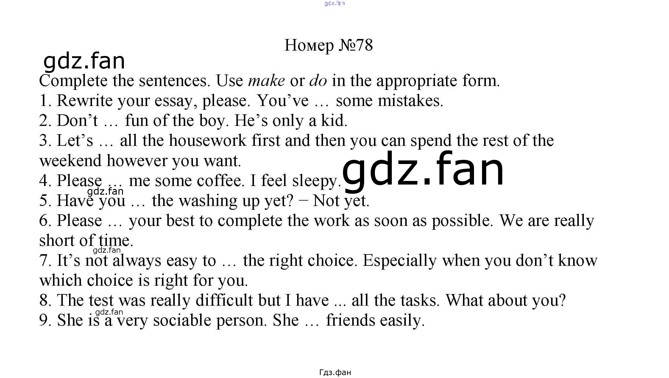 Проверка домашнего задания всегда занимает большое количество времени. На помощь приходит ГДЗ фан по Английскому языку восьмого класса. Здесь собраны популярные ответы на 78 (стр. 146) Английский язык 8 класс Enjoy English Биболетова М.З.