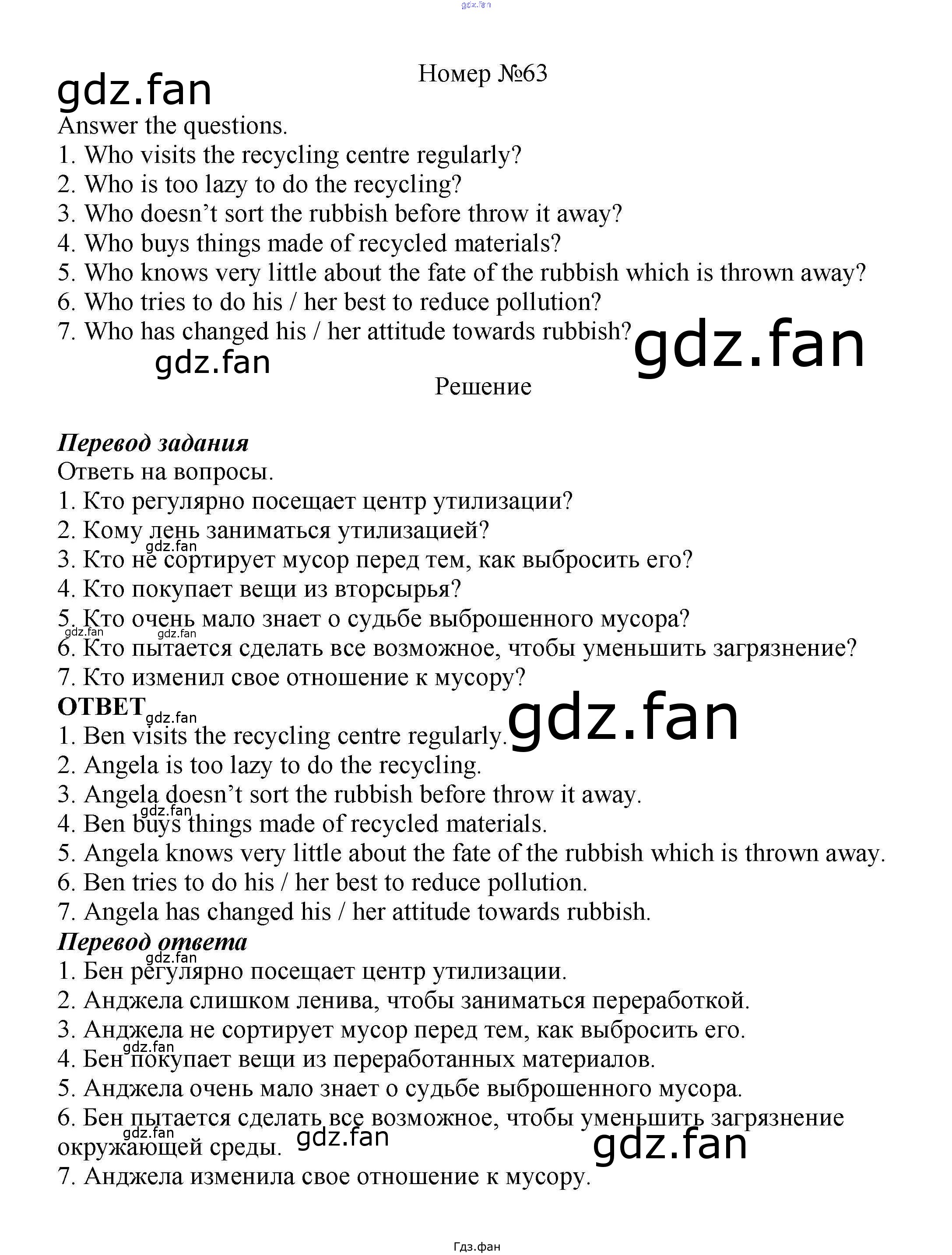 Проверка домашнего задания всегда занимает большое количество времени. На помощь приходит ГДЗ фан по Английскому языку восьмого класса. Здесь собраны популярные ответы на 63 (стр. 73) Английский язык 8 класс Enjoy English Биболетова М.З.