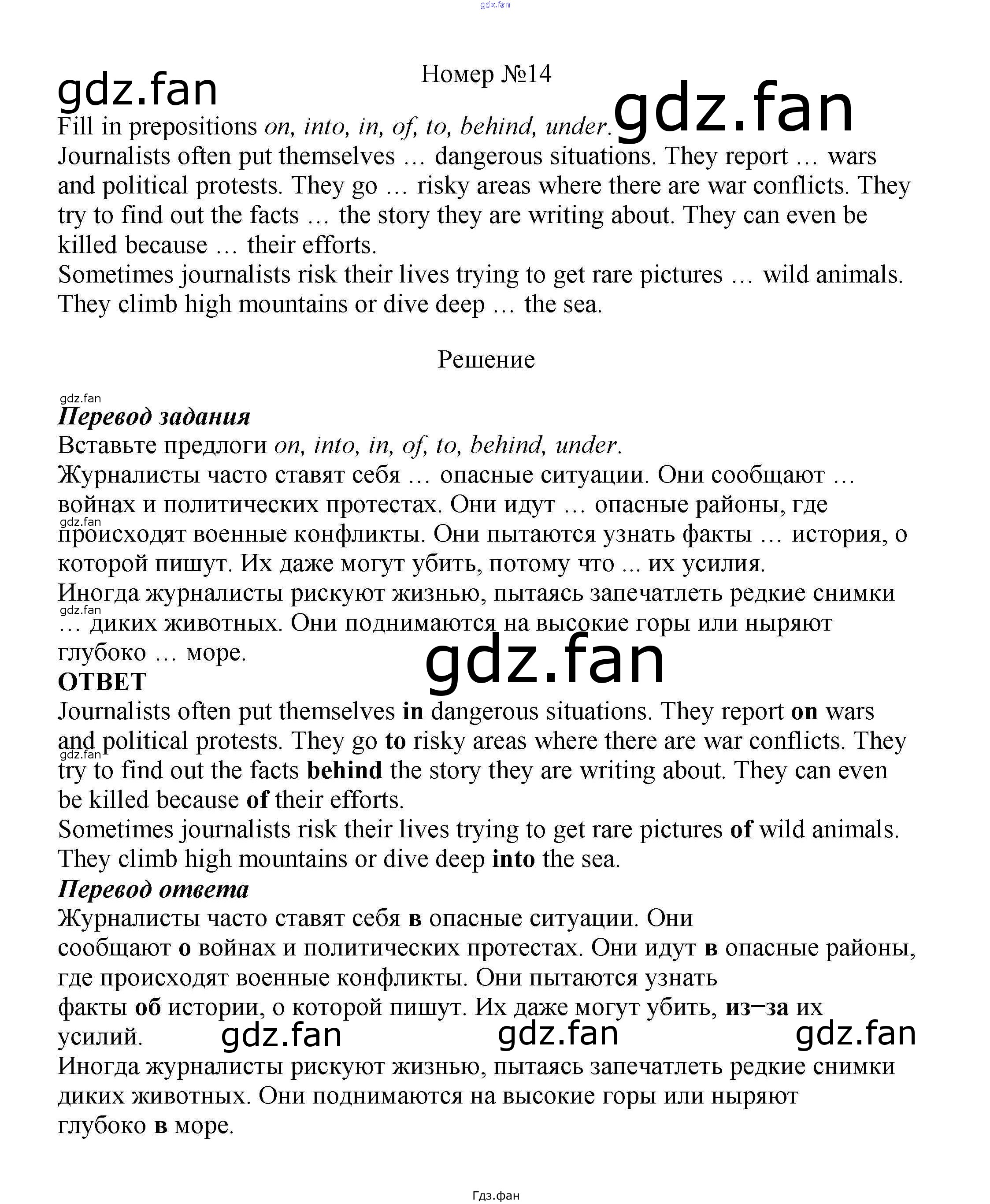 Проверка домашнего задания всегда занимает большое количество времени. На помощь приходит ГДЗ фан по Английскому языку восьмого класса. Здесь собраны популярные ответы на 14 (стр. 119) Английский язык 8 класс Enjoy English Биболетова М.З.