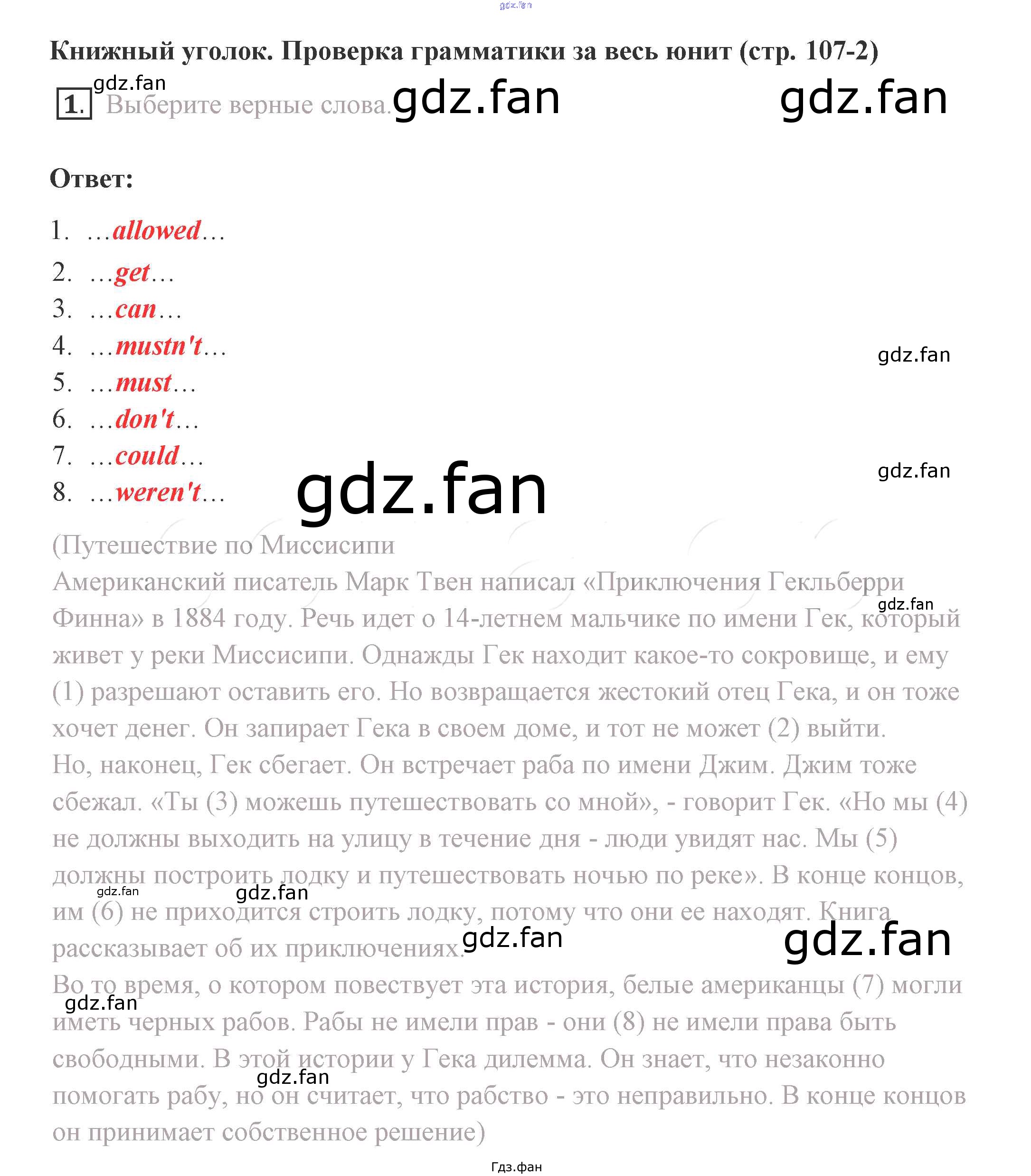 Проверка домашнего задания всегда занимает большое количество времени. На помощь приходит ГДЗ фан по Английскому языку восьмого класса. Здесь собраны популярные ответы на 107 (unit 8) Английский язык 8 класс Комарова Ю.А.
