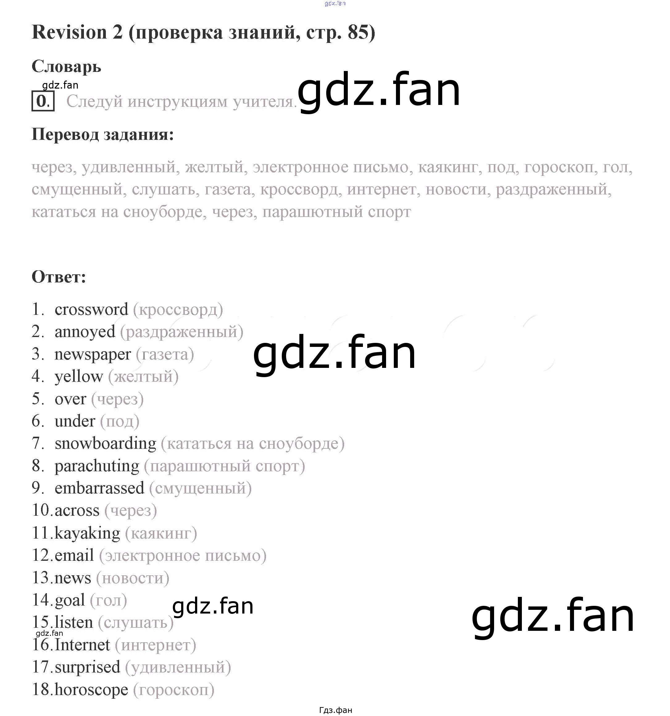 Проверка домашнего задания всегда занимает большое количество времени. На помощь приходит ГДЗ фан по Английскому языку восьмого класса. Здесь собраны популярные ответы на 85 (revision 2) Английский язык 8 класс Комарова Ю.А.