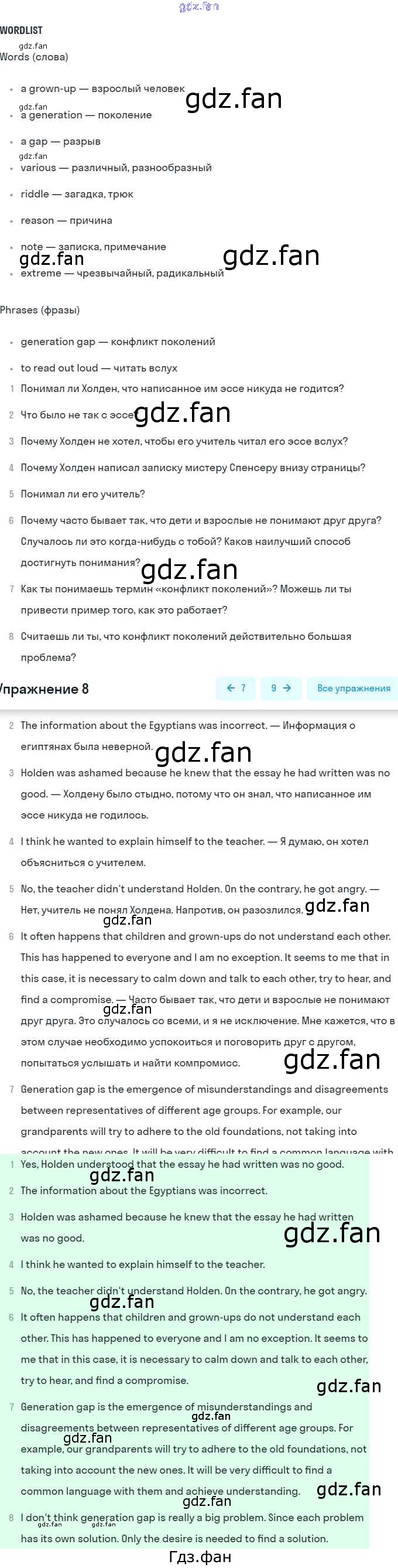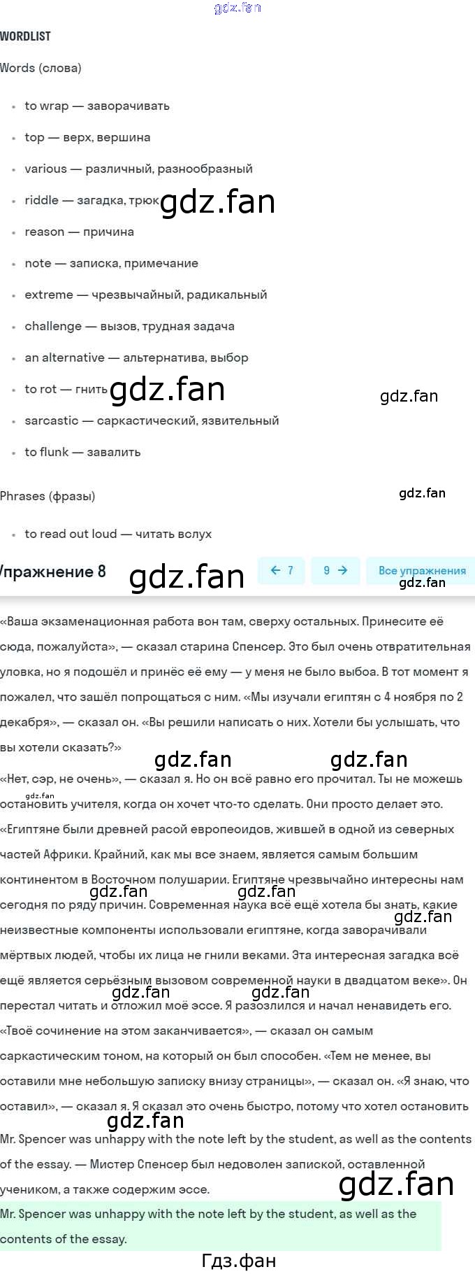 ГДЗ - онлайн ответы на 8 (стр. 73) Английский язык для 9 класса к Учебнику Rainbow Афанасьева, Михеева 2017