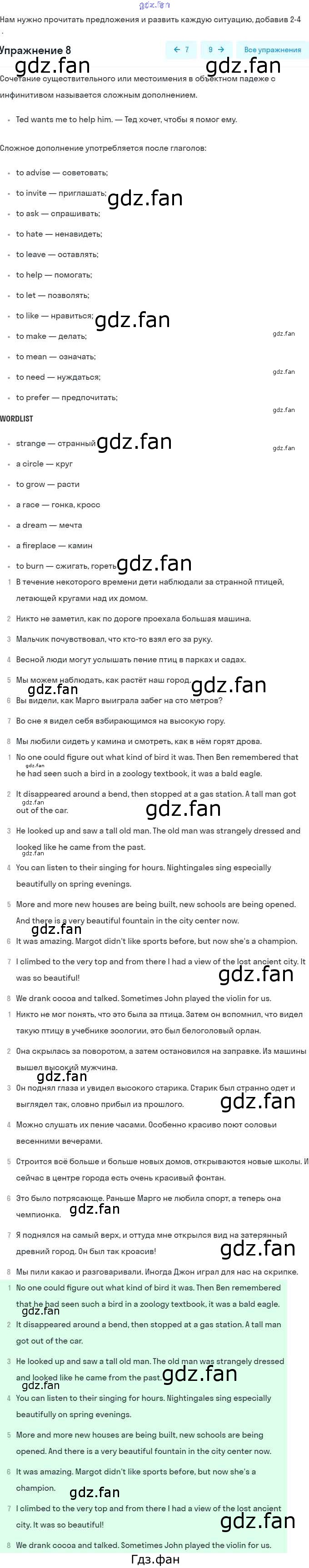 ГДЗ - онлайн ответы на 8 (стр. 78) Английский язык для 9 класса к Учебнику Rainbow Афанасьева, Михеева 2017
