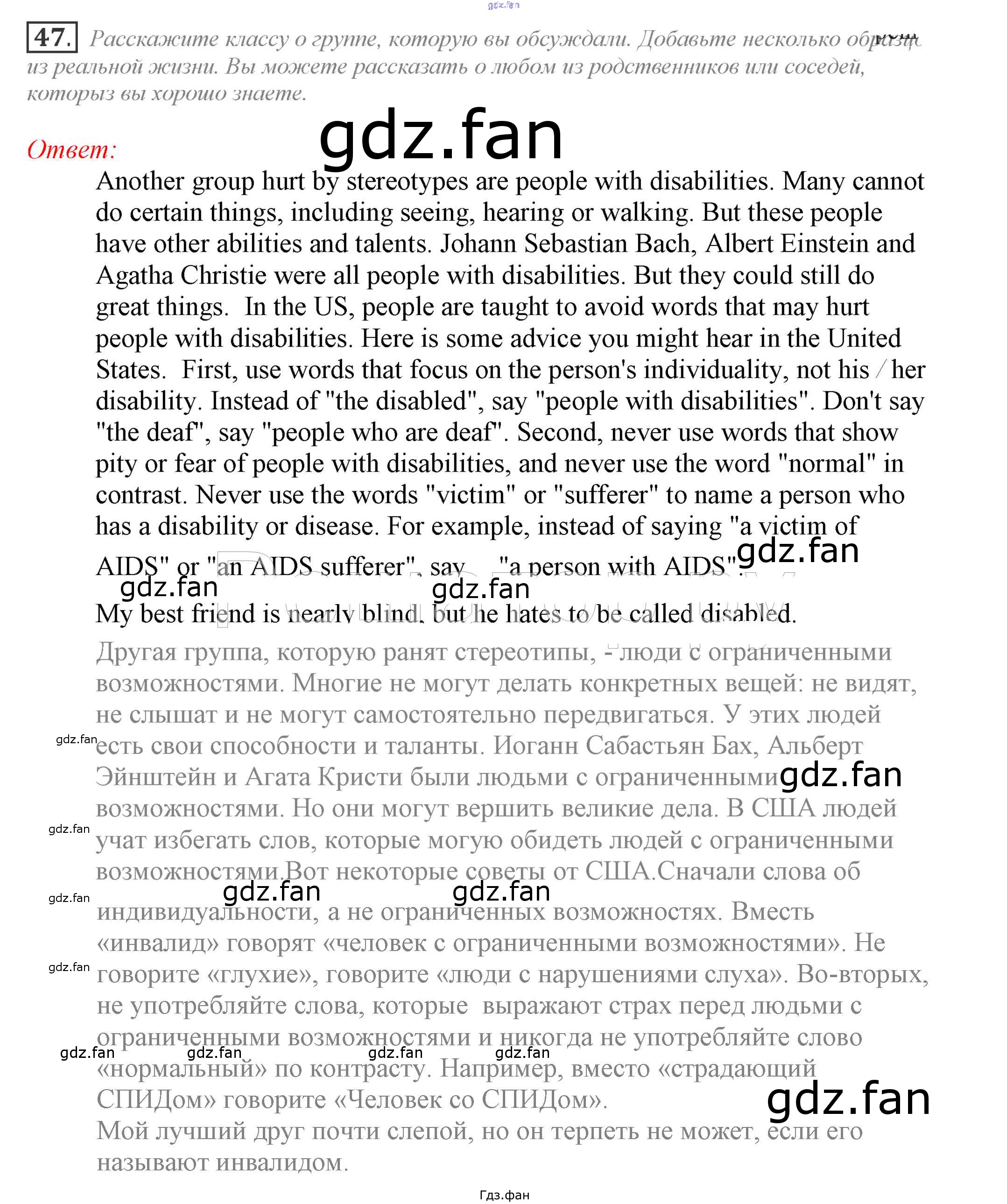 Проверка домашнего задания всегда занимает большое количество времени. На помощь приходит ГДЗ фан по Английскому языку девятого класса. Здесь собраны популярные ответы на 47 (стр. 171) Английский язык 9 класс Enjoy English Биболетова М.З.