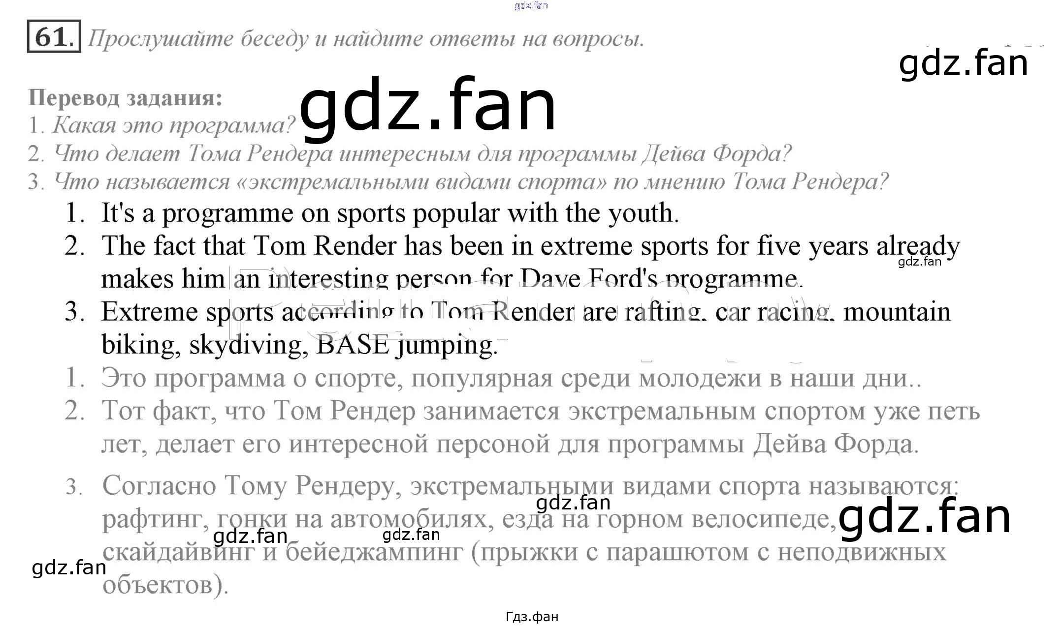 Проверка домашнего задания всегда занимает большое количество времени. На помощь приходит ГДЗ фан по Английскому языку девятого класса. Здесь собраны популярные ответы на 61 (стр. 175) Английский язык 9 класс Enjoy English Биболетова М.З.