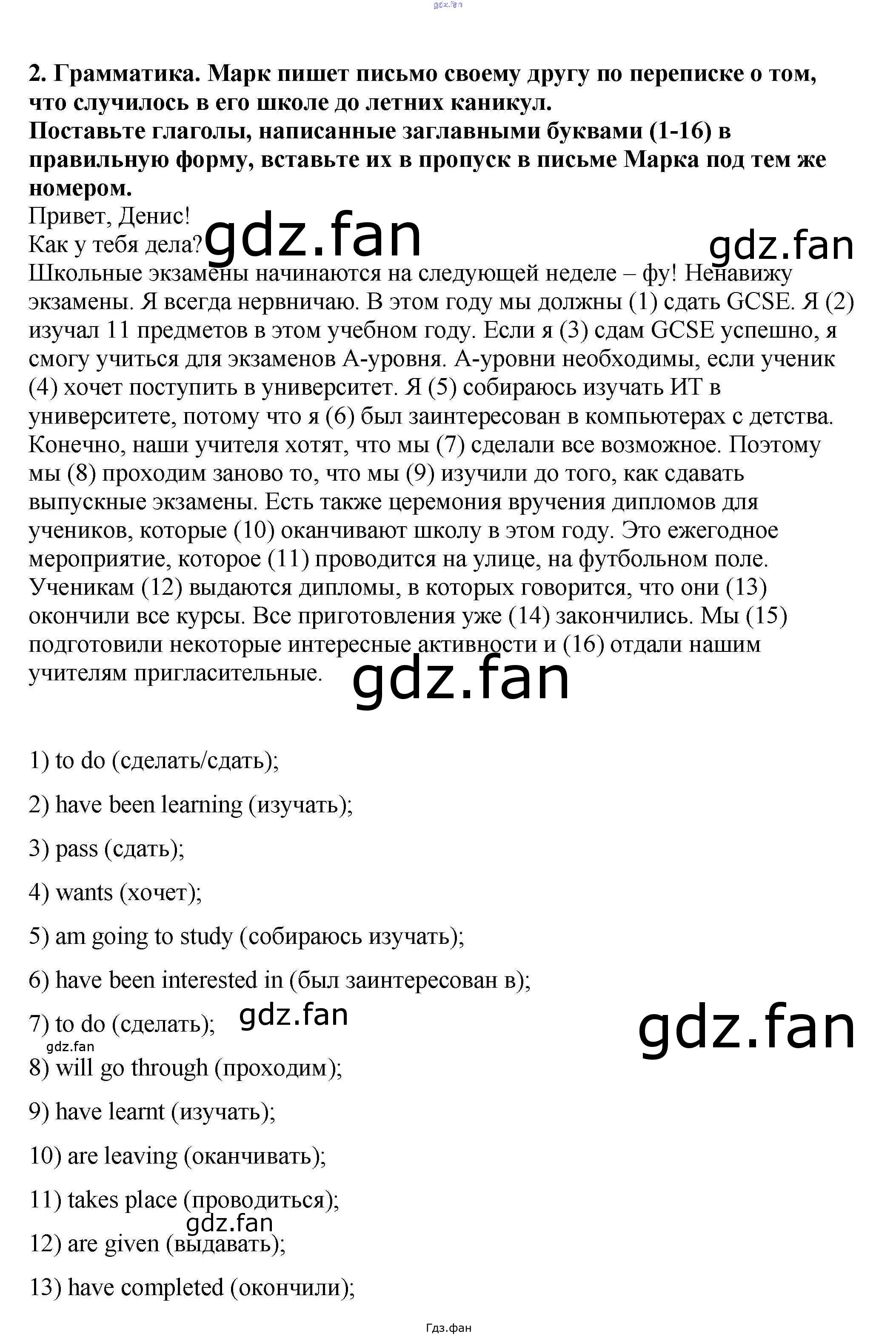 Проверка домашнего задания всегда занимает большое количество времени. На помощь приходит ГДЗ фан по Английскому языку девятого класса. Здесь собраны популярные ответы на 2 (стр. 139-140) Английский язык 9 класс рабочая тетрадь Кузовлев