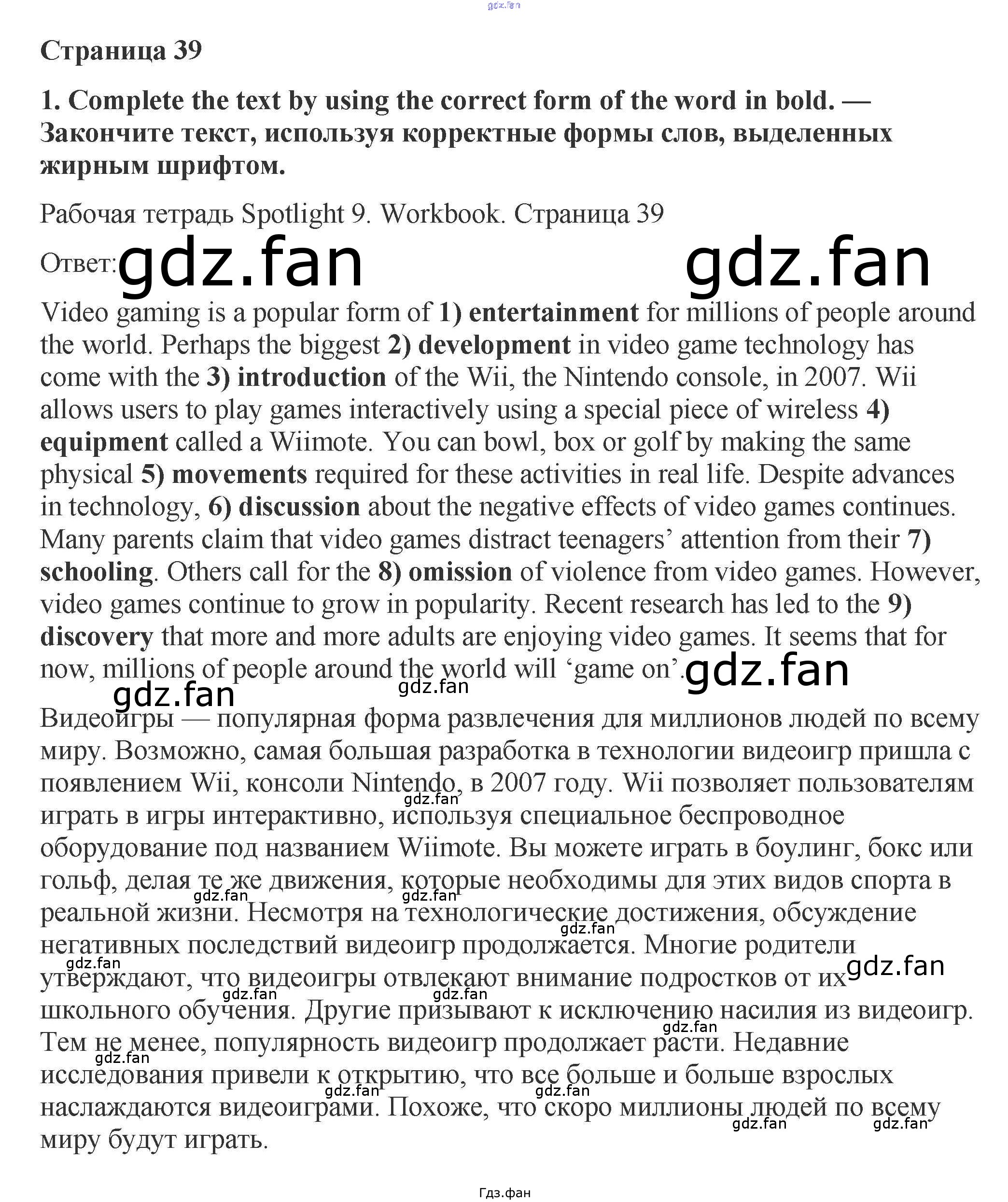 Проверка домашнего задания всегда занимает большое количество времени. На помощь приходит ГДЗ фан по Английскому языку девятого класса. Здесь собраны популярные ответы на 1 (стр. 39) Английский язык 9 класс рабочая тетрадь Spotlight Ваулина
