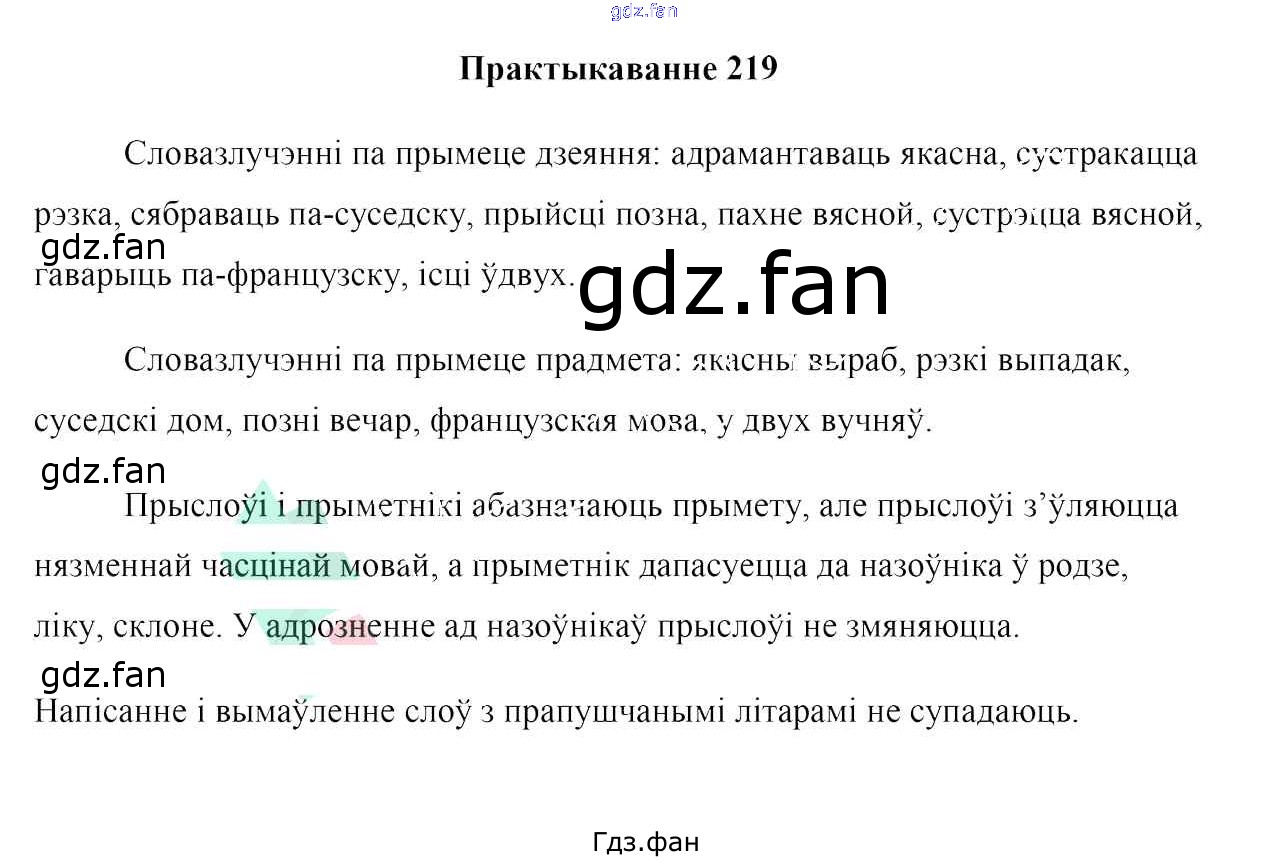 Проверка домашнего задания всегда занимает большое количество времени. На помощь приходит ГДЗ фан по Белорусскому языку седьмого класса. Здесь собраны популярные ответы на 219 (ст. 123) Белоруская мова 7 класс Валочка Г. М.