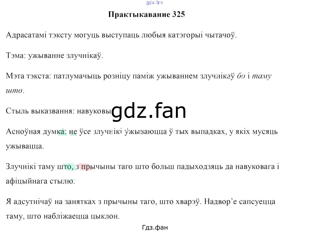 Проверка домашнего задания всегда занимает большое количество времени. На помощь приходит ГДЗ фан по Белорусскому языку седьмого класса. Здесь собраны популярные ответы на 325 (ст. 193) Белоруская мова 7 класс Валочка Г. М.