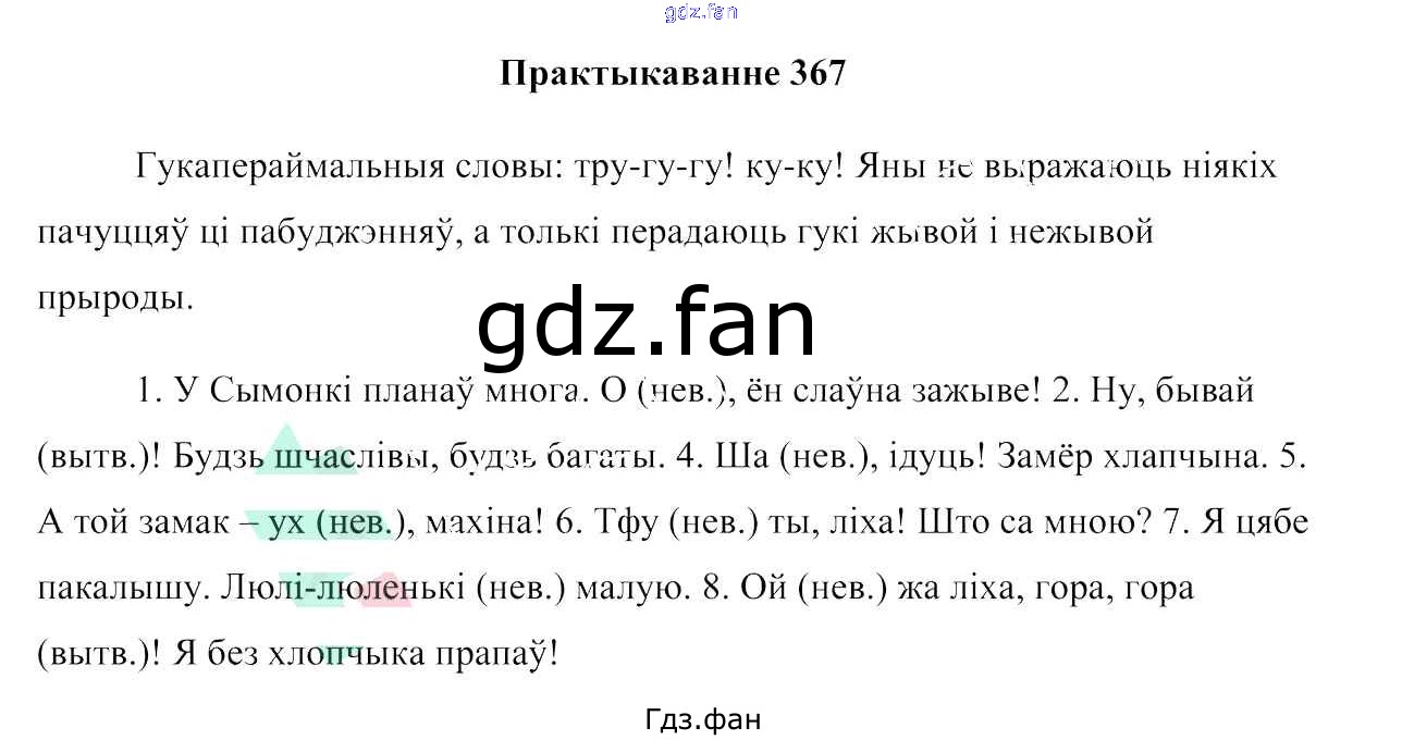 Проверка домашнего задания всегда занимает большое количество времени. На помощь приходит ГДЗ фан по Белорусскому языку седьмого класса. Здесь собраны популярные ответы на 367 (ст. 217) Белоруская мова 7 класс Валочка Г. М.