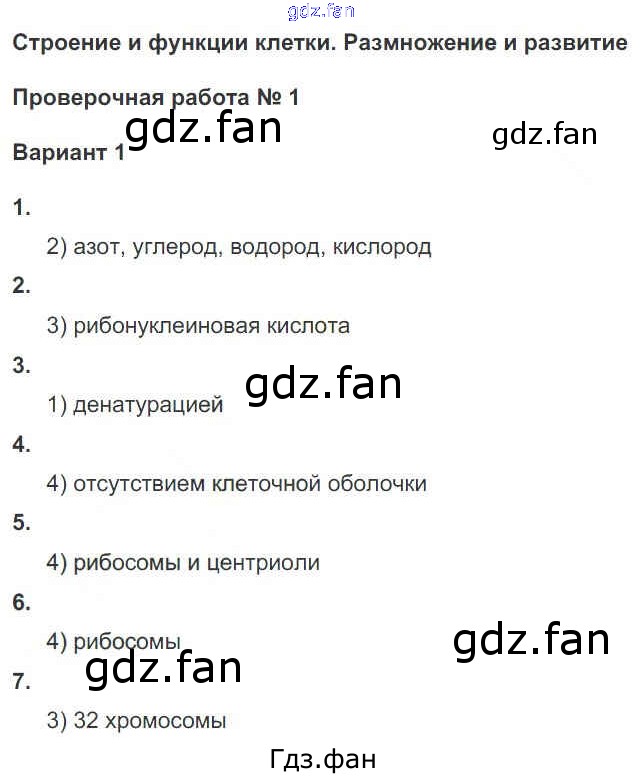 Проверка домашнего задания всегда занимает большое количество времени. На помощь приходит ГДЗ фан по Биологии десятого класса. Здесь собраны популярные ответы на 4 (проверочная работа №1, вариант 1) Биология 10-11 класс тетрадь-экзаменатор Сухорукова Л.Н.