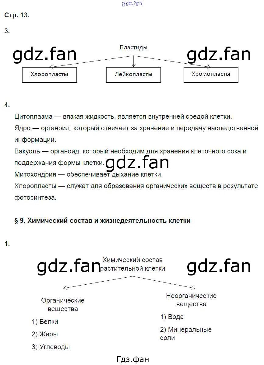 Проверка домашнего задания всегда занимает большое количество времени. На помощь приходит ГДЗ фан по Биологии шестого класса. Здесь собраны популярные ответы на 13 (№ 3, 4. §9. Химический состав и жизнедеятельность клетки № 1) Биология 6 класс рабочая тетрадь Исаева Т.А.