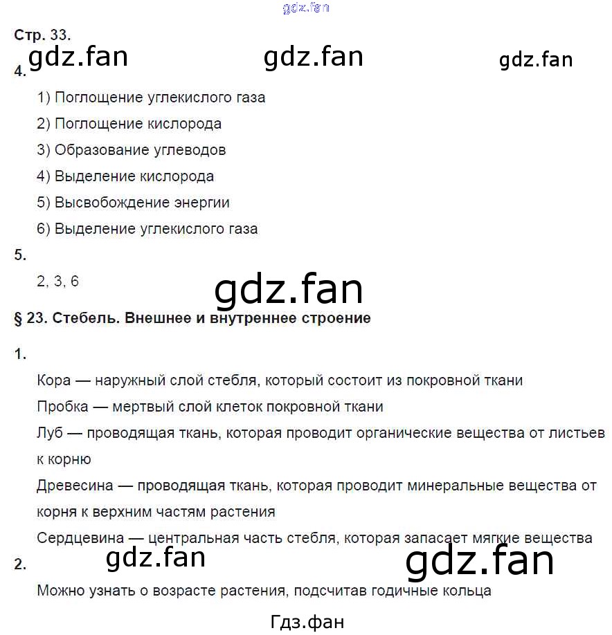 Проверка домашнего задания всегда занимает большое количество времени. На помощь приходит ГДЗ фан по Биологии шестого класса. Здесь собраны популярные ответы на 33 (№ 4. 5. §23. Стебель. Внешнее и внутреннее строение № 1, 2) Биология 6 класс рабочая тетрадь Исаева Т.А.