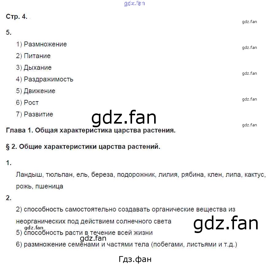 Проверка домашнего задания всегда занимает большое количество времени. На помощь приходит ГДЗ фан по Биологии шестого класса. Здесь собраны популярные ответы на 4 (№ 5. §2. Общие характеристики царства растений №1, 2) Биология 6 класс рабочая тетрадь Исаева Т.А.