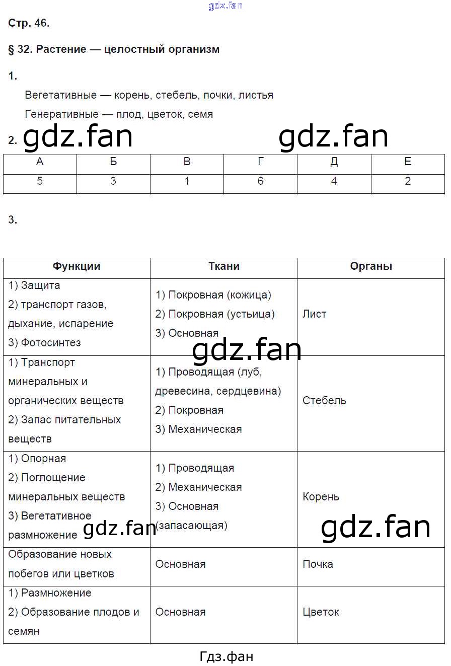Проверка домашнего задания всегда занимает большое количество времени. На помощь приходит ГДЗ фан по Биологии шестого класса. Здесь собраны популярные ответы на 46 (§32. Растение — целостный организм Вегетативные — корень, стебель, п № 1, 2, 3) Биология 6 класс рабочая тетрадь Исаева Т.А.