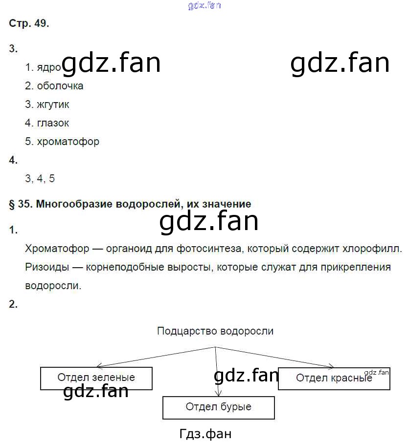 Проверка домашнего задания всегда занимает большое количество времени. На помощь приходит ГДЗ фан по Биологии шестого класса. Здесь собраны популярные ответы на 49 (№ 3, 4. §35. Многообразие водорослей, их значение № 1, 2) Биология 6 класс рабочая тетрадь Исаева Т.А.