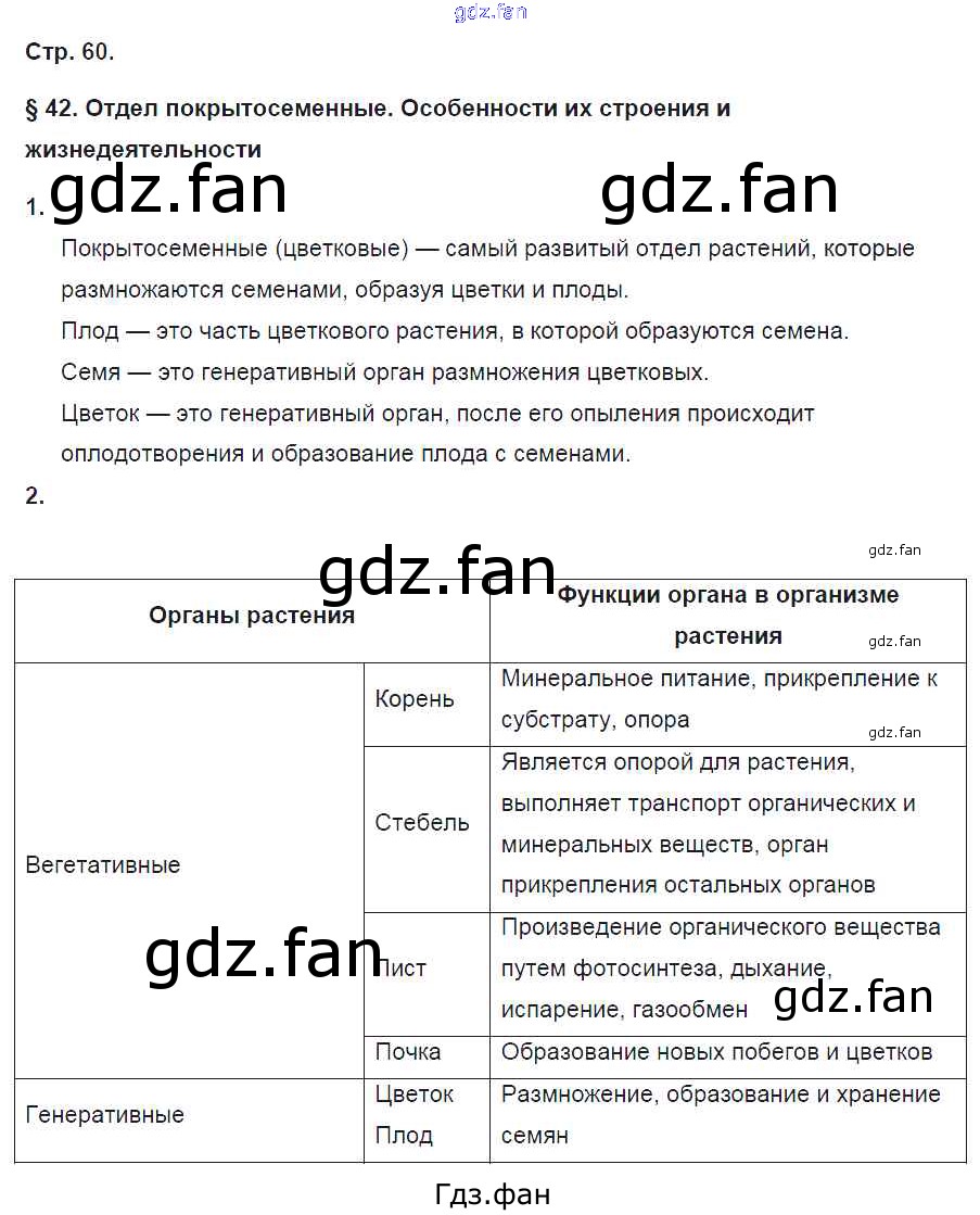Проверка домашнего задания всегда занимает большое количество времени. На помощь приходит ГДЗ фан по Биологии шестого класса. Здесь собраны популярные ответы на 60 (§42. Отдел покрытосеменные № 1, 2) Биология 6 класс рабочая тетрадь Исаева Т.А.