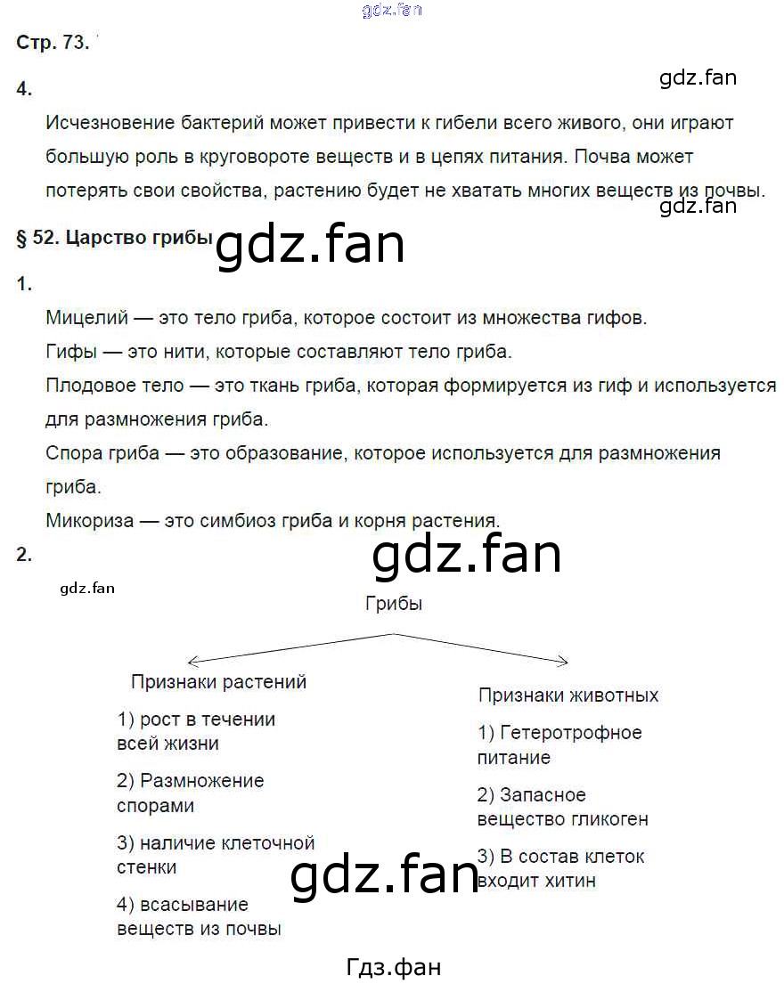 Проверка домашнего задания всегда занимает большое количество времени. На помощь приходит ГДЗ фан по Биологии шестого класса. Здесь собраны популярные ответы на 73 (№ 4. §52. Царство грибы № 1, 2) Биология 6 класс рабочая тетрадь Исаева Т.А.