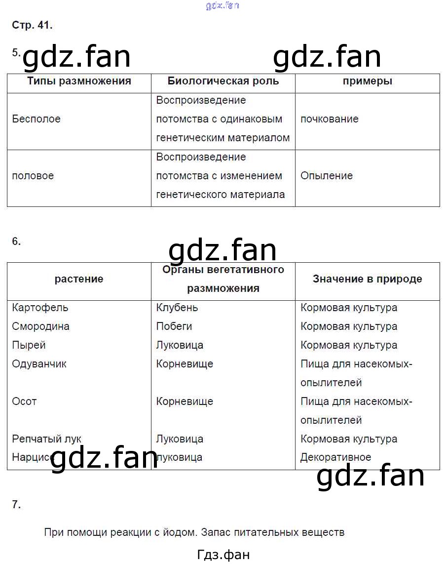 Проверка домашнего задания всегда занимает большое количество времени. На помощь приходит ГДЗ фан по Биологии шестого класса. Здесь собраны популярные ответы на 41 (№ 5, 6, 7) Биология 6 класс рабочая тетрадь Пасечник В.В.