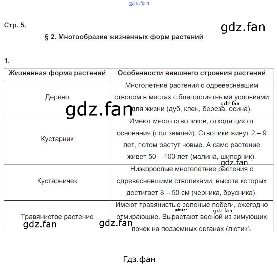 Проверка домашнего задания всегда занимает большое количество времени. На помощь приходит ГДЗ фан по Биологии шестого класса. Здесь собраны популярные ответы на 5 (§2 № 1) Биология 6 класс рабочая тетрадь Пономарева И.Н.