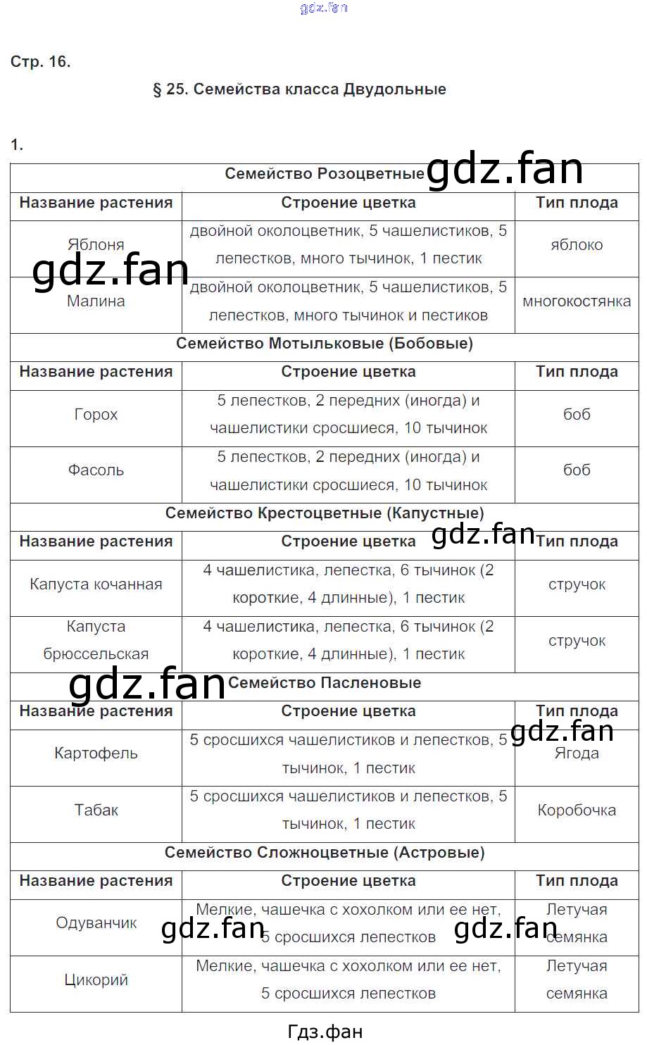 Проверка домашнего задания всегда занимает большое количество времени. На помощь приходит ГДЗ фан по Биологии шестого класса. Здесь собраны популярные ответы на 16 (§25 № 1) Биология 6 класс рабочая тетрадь Пономарева И.Н.