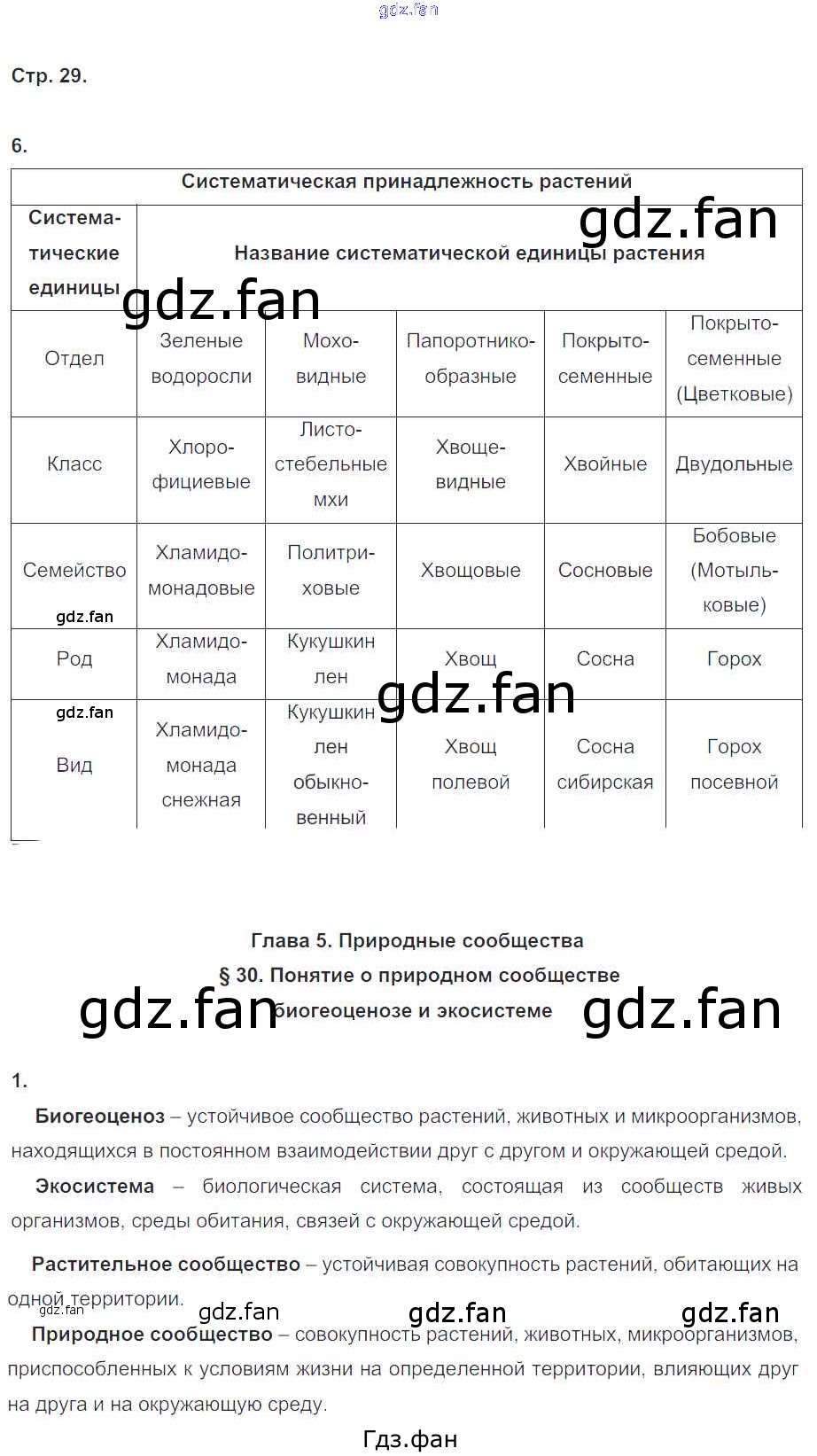 Проверка домашнего задания всегда занимает большое количество времени. На помощь приходит ГДЗ фан по Биологии шестого класса. Здесь собраны популярные ответы на 29 (№ 6. §30 № 1) Биология 6 класс рабочая тетрадь Пономарева И.Н.