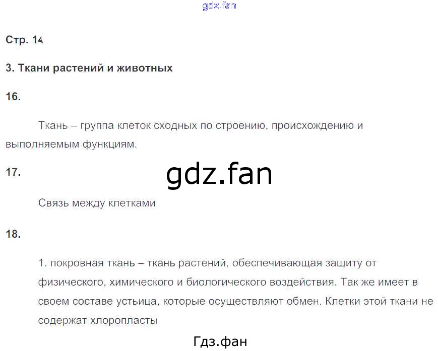 Проверка домашнего задания всегда занимает большое количество времени. На помощь приходит ГДЗ фан по Биологии шестого класса. Здесь собраны популярные ответы на 14 (Ткани растений и животных № 16, 17, 18) Биология 6 класс рабочая тетрадь Сонин Н.И.