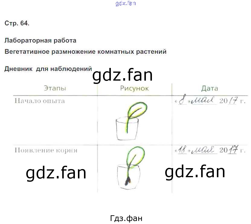 Проверка домашнего задания всегда занимает большое количество времени. На помощь приходит ГДЗ фан по Биологии шестого класса. Здесь собраны популярные ответы на 64 (Лаб. работа Вегетативное размножение комнатных растений) Биология 6 класс рабочая тетрадь Сонин Н.И.
