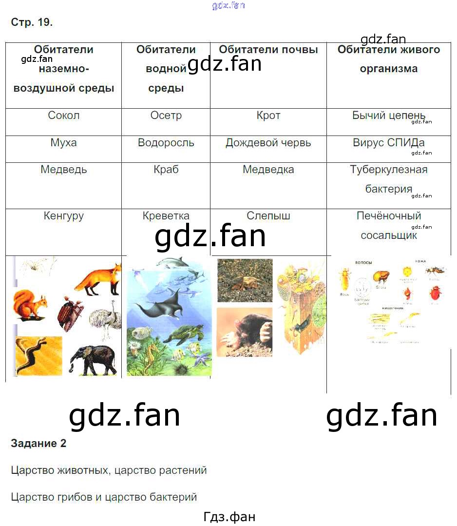Проверка домашнего задания всегда занимает большое количество времени. На помощь приходит ГДЗ фан по Биологии пятого класса. Здесь собраны популярные ответы на страница 19 (задание 1, 2) Биология 5-6 класс рабочая тетрадь Сухова Т.С.