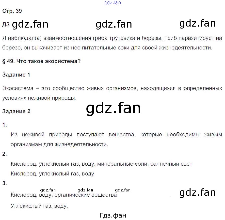 Проверка домашнего задания всегда занимает большое количество времени. На помощь приходит ГДЗ фан по Биологии пятого класса. Здесь собраны популярные ответы на страница 39 (домашнее задание, задание 1, 2) Биология 5-6 класс рабочая тетрадь Сухова Т.С.