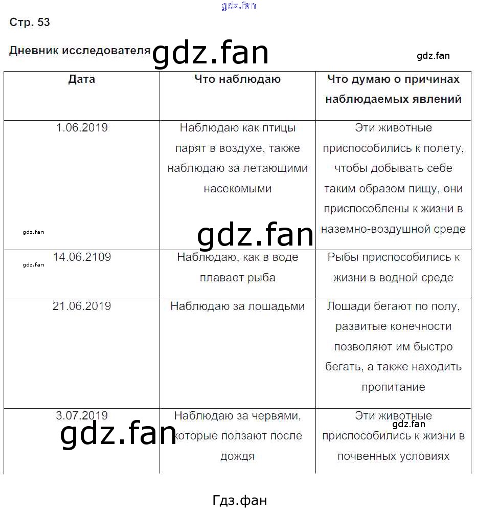 Проверка домашнего задания всегда занимает большое количество времени. На помощь приходит ГДЗ фан по Биологии пятого класса. Здесь собраны популярные ответы на страница 53 (дневник исследователя) Биология 5-6 класс рабочая тетрадь Сухова Т.С.