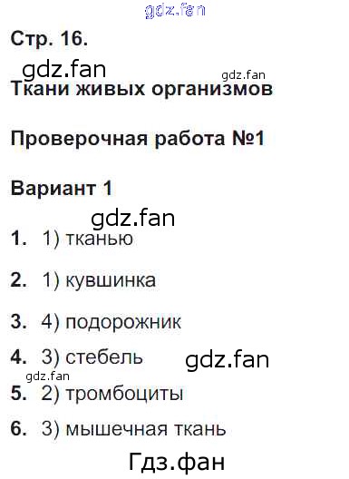 Проверка домашнего задания всегда занимает большое количество времени. На помощь приходит ГДЗ фан по Биологии пятого класса. Здесь собраны популярные ответы на 16 (Ткани живых организмов. Проверочная работа №1. Вариант 1 № 1, 2, 3, 4, 5, 6) Биология 5-6 класс тетрадь-экзаменатор Сухорукова Л.Н.
