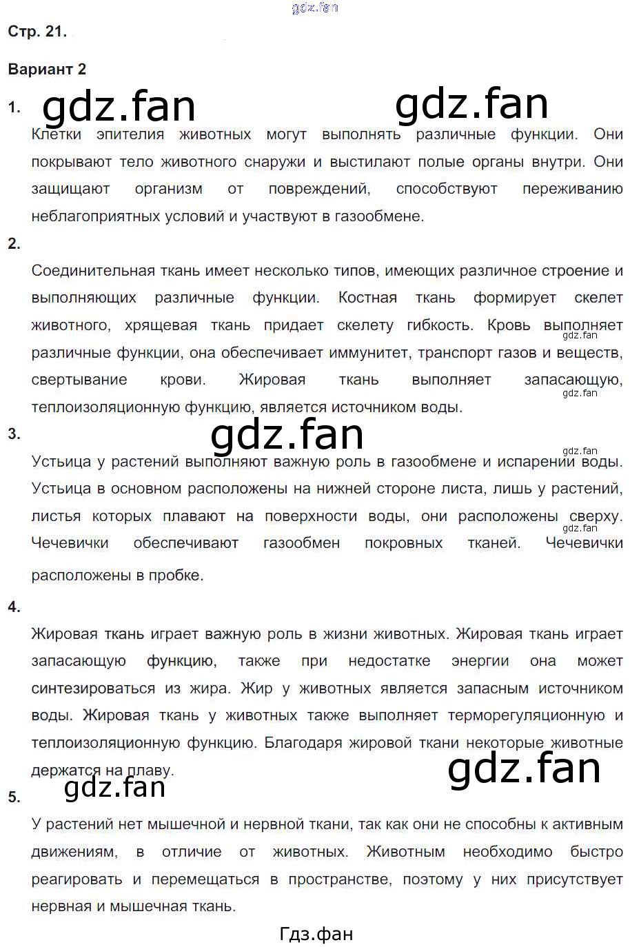 Проверка домашнего задания всегда занимает большое количество времени. На помощь приходит ГДЗ фан по Биологии пятого класса. Здесь собраны популярные ответы на 21 (Вариант 2 № 1, 2, 3, 4, 5) Биология 5-6 класс тетрадь-экзаменатор Сухорукова Л.Н.