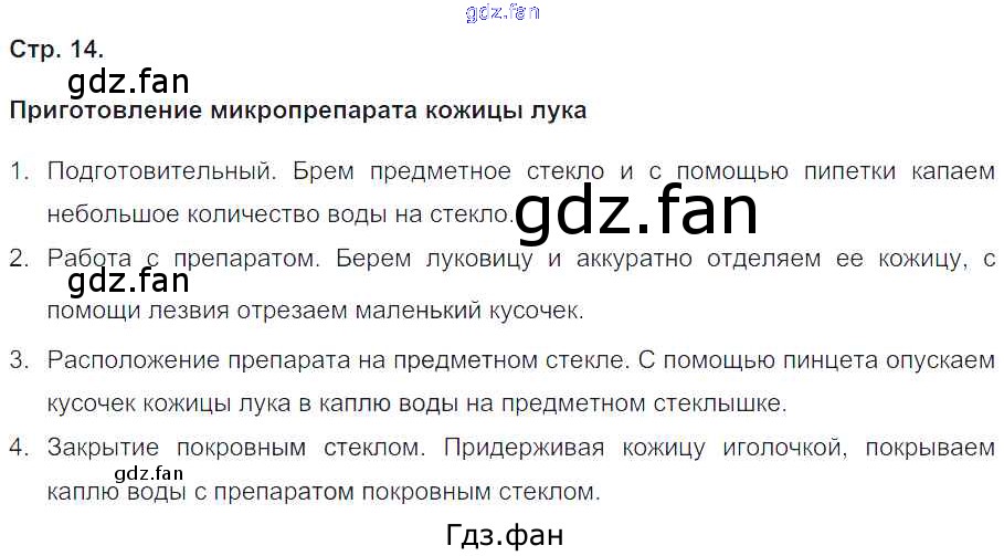 Проверка домашнего задания всегда занимает большое количество времени. На помощь приходит ГДЗ фан по Биологии пятого класса. Здесь собраны популярные ответы на Приготовление микропрепарата кожицы чешуи лука - 14 Биология 5-6 класс тетрадь-практикум Сухорукова Л.Н.