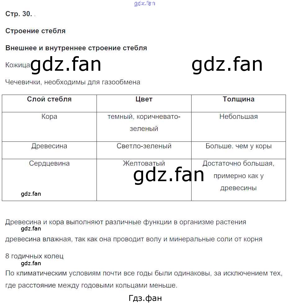 Проверка домашнего задания всегда занимает большое количество времени. На помощь приходит ГДЗ фан по Биологии пятого класса. Здесь собраны популярные ответы на Строение стебля - 30 Биология 5-6 класс тетрадь-практикум Сухорукова Л.Н.