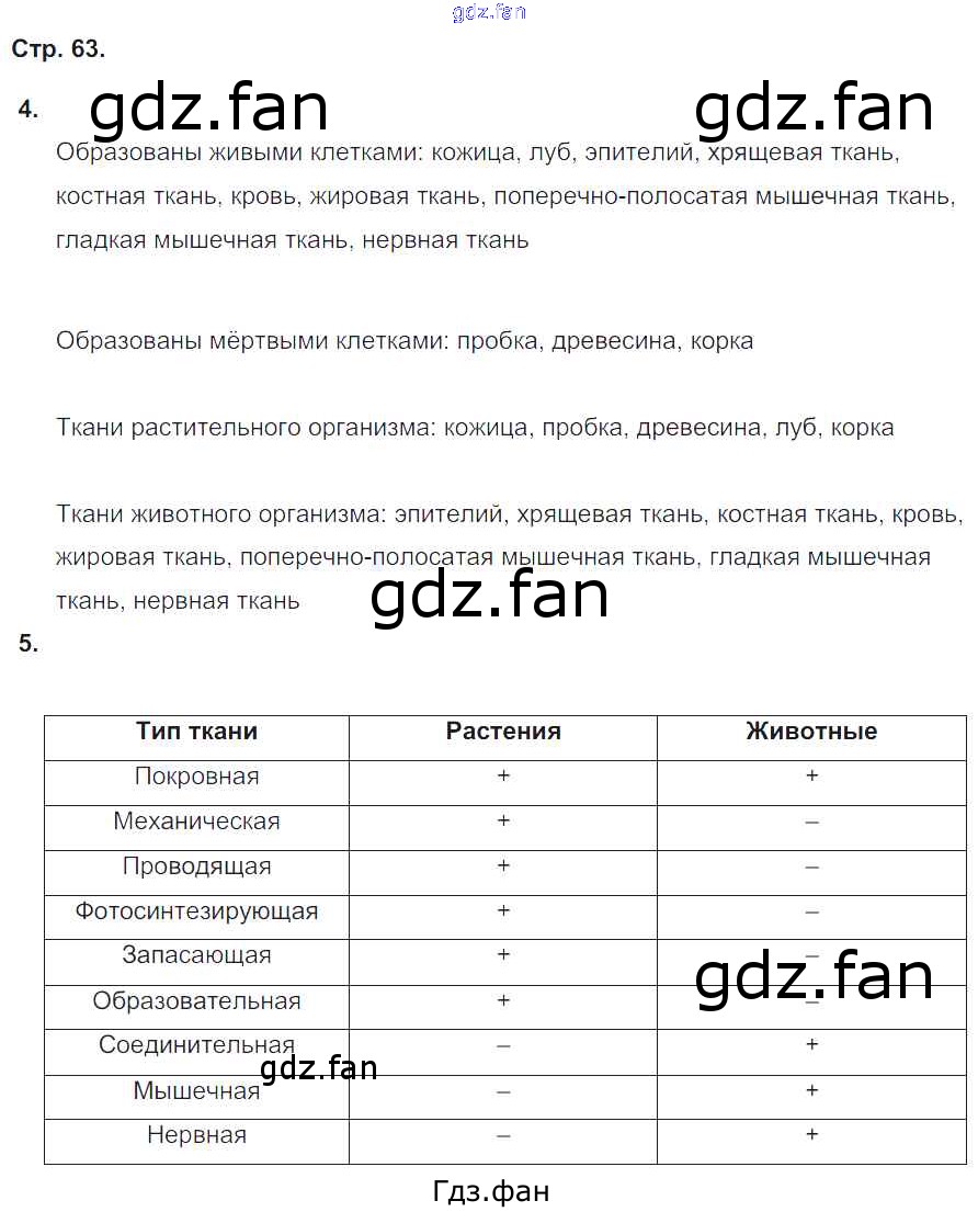 Проверка домашнего задания всегда занимает большое количество времени. На помощь приходит ГДЗ фан по Биологии пятого класса. Здесь собраны популярные ответы на 63 (№ 4, 5) Биология 5-6 класс тетрадь-тренажер Сухорукова Л.Н.